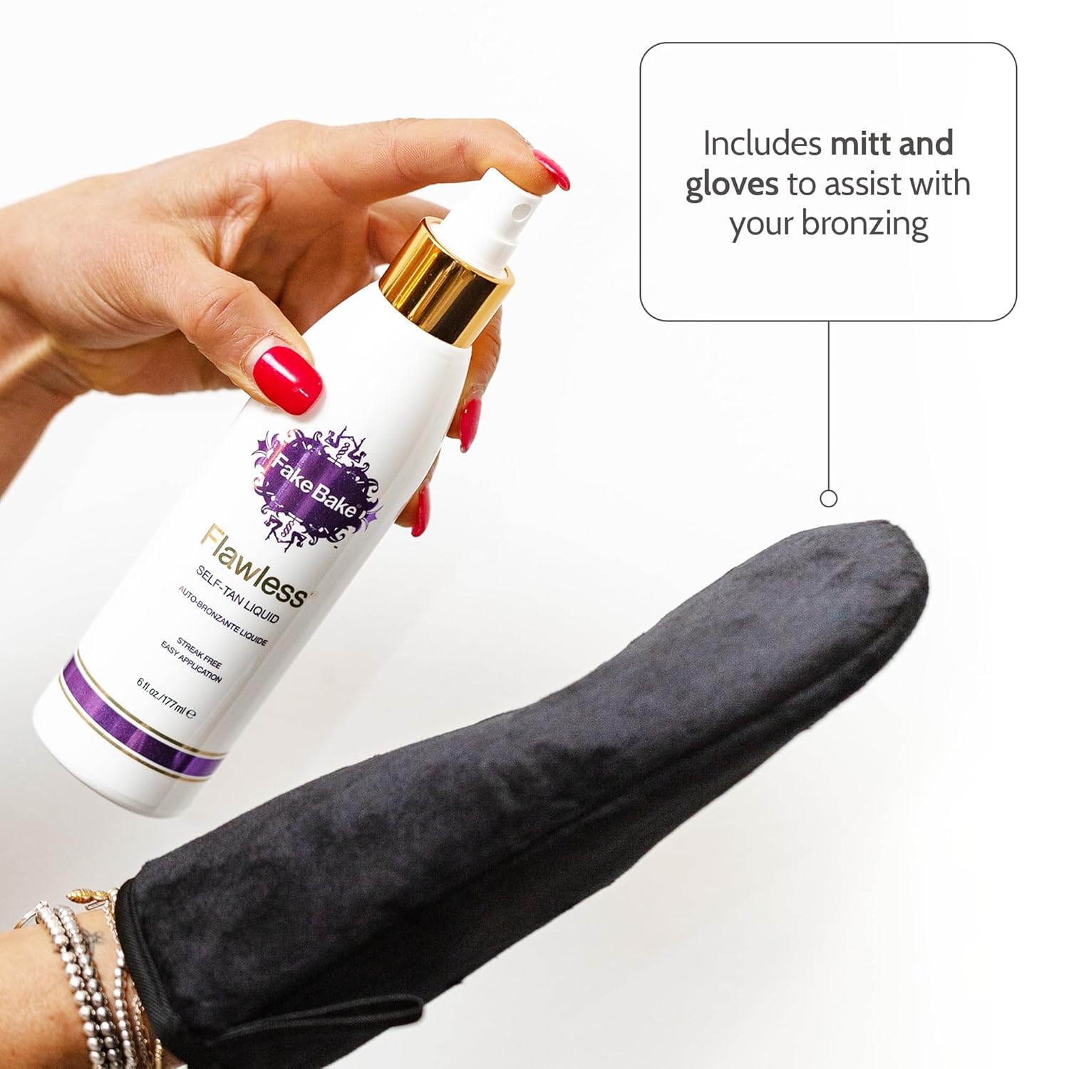 - FLAWLESSLY TANNED WITHOUT THE SUN - Built-in color guide so you can see where it's going from back to legs, ensuring solid application; includes mitt and gloves to assist with your bronzing.