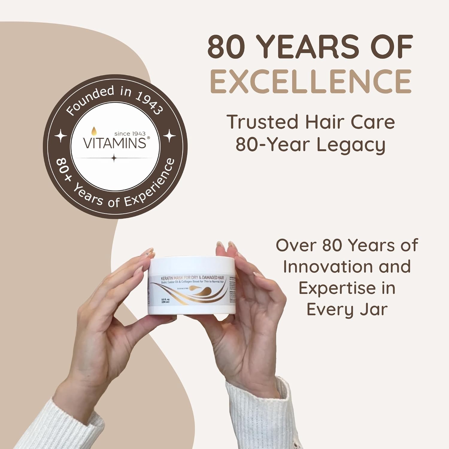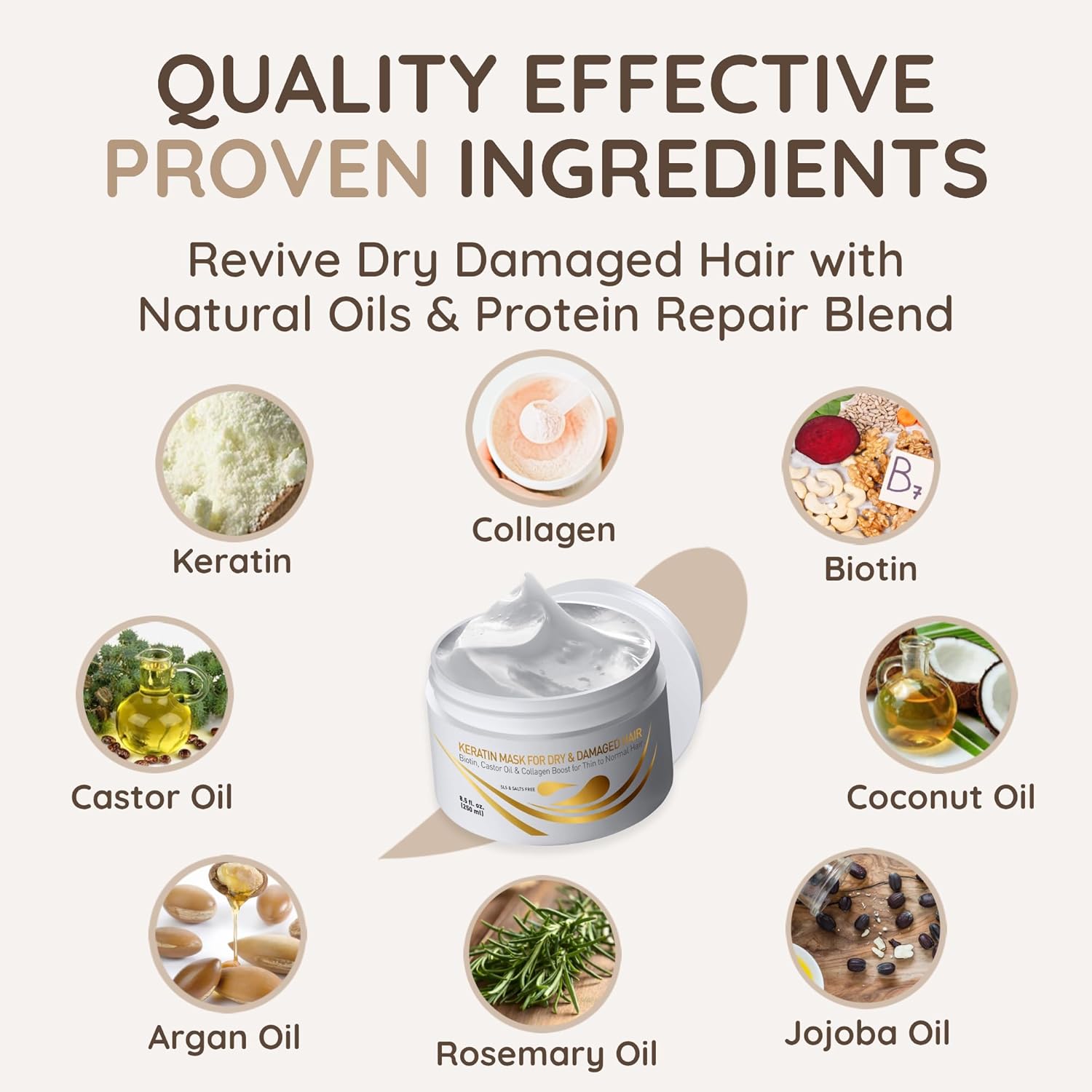 VITAMINS hair cosmetics Keratin Hair Mask - Protein Repair Keratin Treatment - Deep Conditioner for Dry, Damaged, Curly, Straight & Frizzy Hair with Biotin, Collagen & Castor Oil - 8.5 Fl Oz