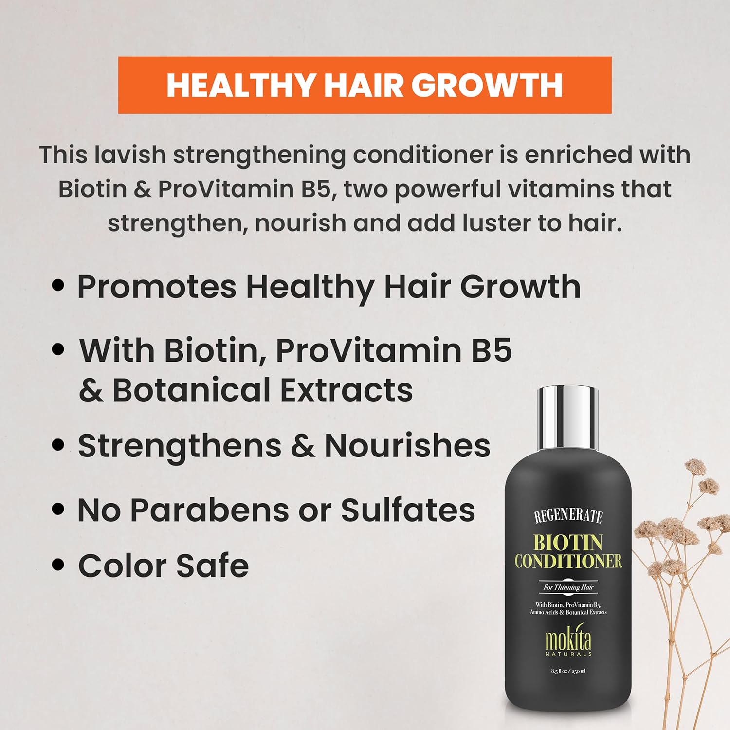 - The Strong, Thick and Shiny Hair That You Deserve - Provide your hair with the unique care that it deserves with Mokita Naturals nourishing hair conditioner. All you need to do is work this conditioner through wet hair AFTER shampooing with our Regenerate Volumizing Shampoo. Massage your scalp and leave in for 1-5 minutes. Do not forget to rinse. Your hair will no longer be weak, thinning or falling.