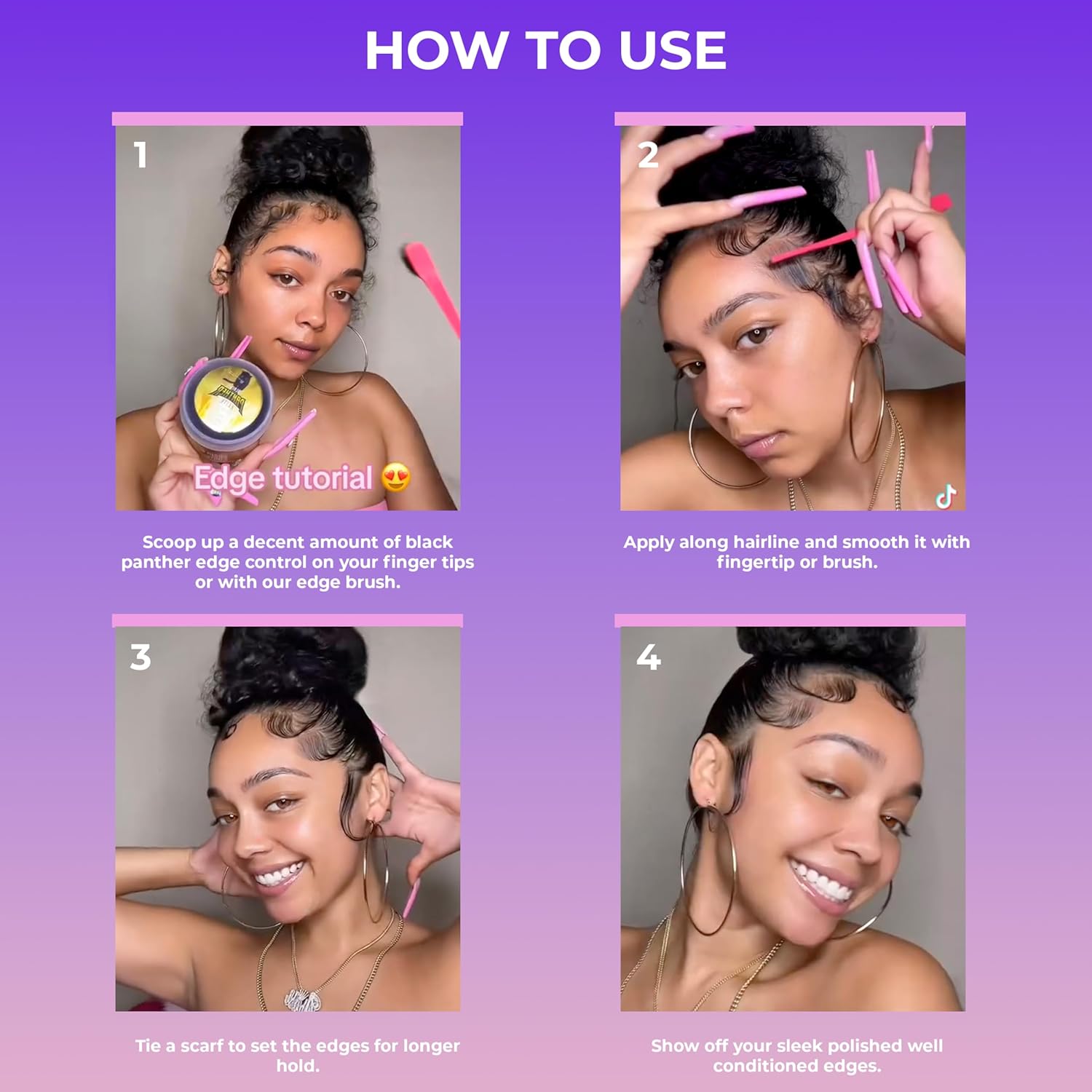 - Product Benefits : Edge Control, Frizz Control, Curl Styling