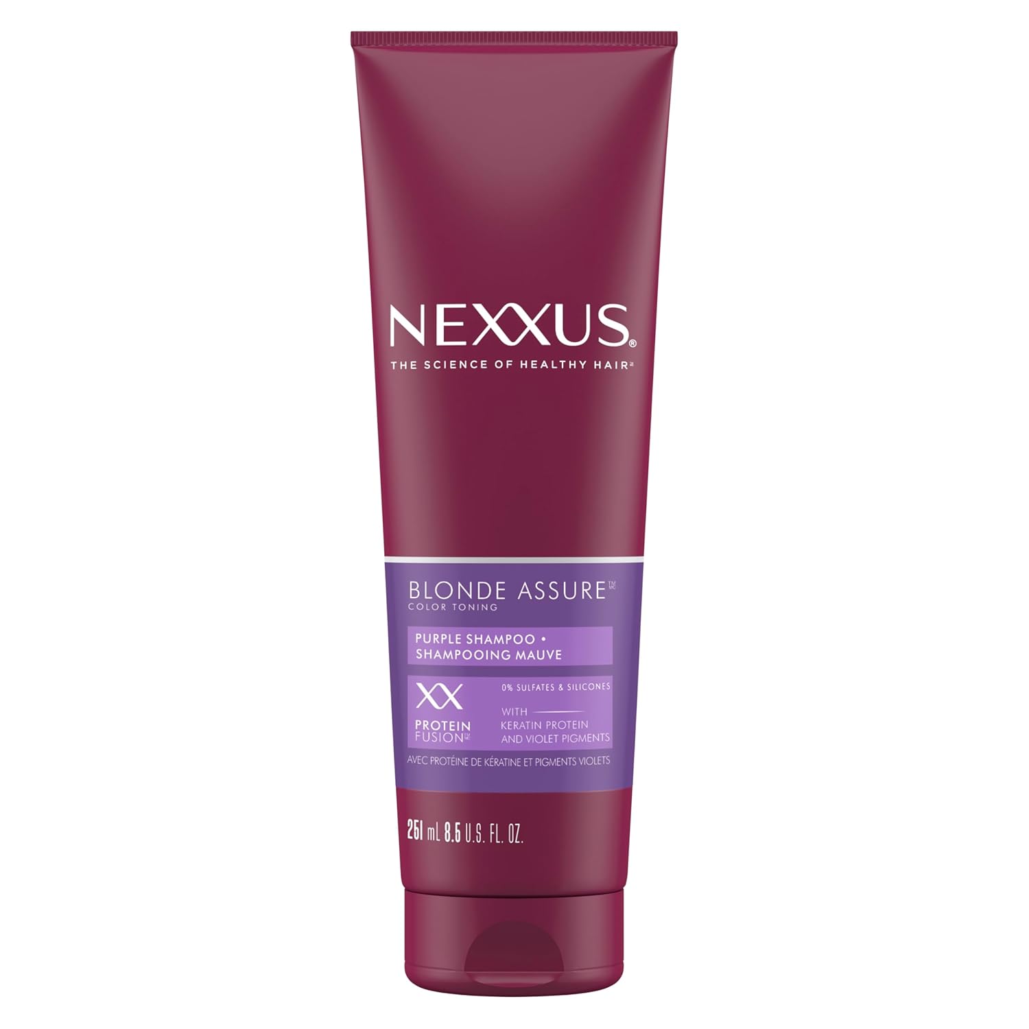 - PURPLE SHAMPOO TO BALANCE BRASSY TONES: Nexxus Blonde Assure Purple Shampoo for blonde, silver, or platinum hair helps neutralize brassy tones and provide long-lasting color care & color vibrancy