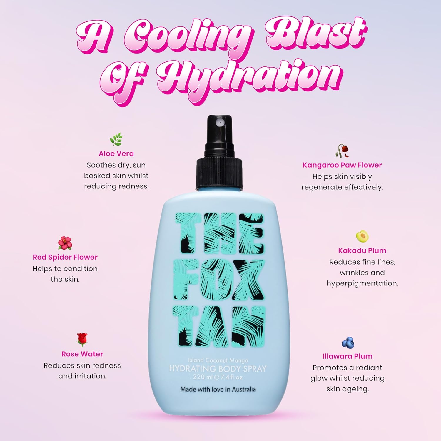 The Fox Tan Hydrating Body Spray, Long-Last Fragrance Perfume Mist, Soothing & Moisturizing, Tropical Scent, Vegan & Cruelty-Free, 220mL