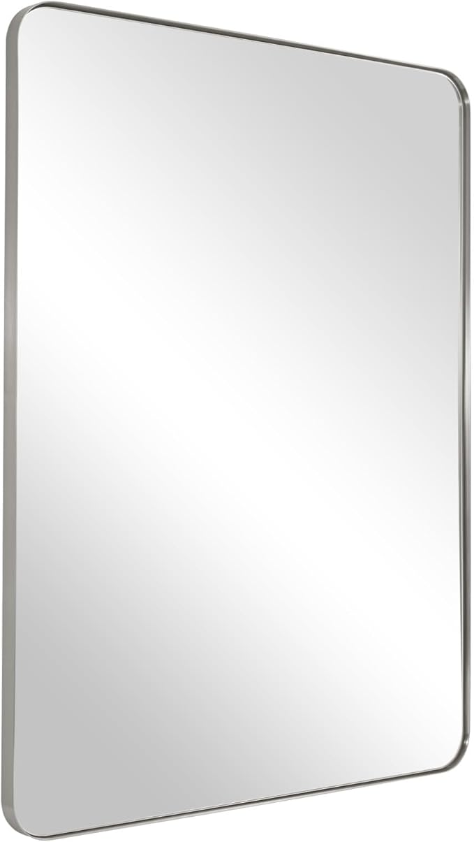 ANDY STAR Wall Mirror Brushed Nickel for Bathroom, 24x36x1 Rounded Rectangle Mirror with Stainless Steel Silver Metal Frame, Modern Bathroom Vanity Mirror
