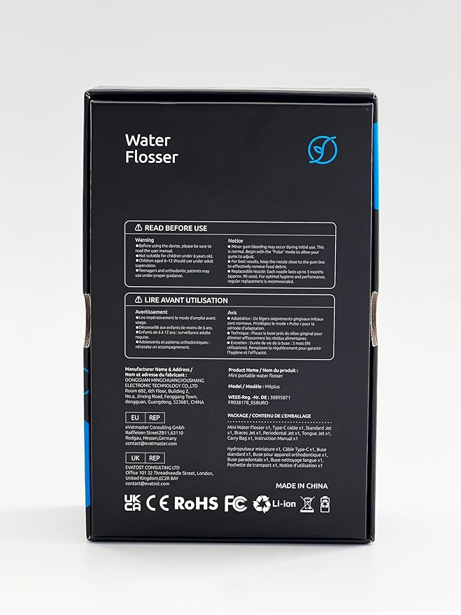 - [Support & Warranty]: SYNHOPE provide 30days no reason refund warranty and 24 hours technical support to ensure you make decision with ease and confidence. Package included: SYNHOPE Water Flosser x 1 , Replacement Jet Nozzles x4, USB cable x1, Instruction Manualx1. Search B09712KM1Q if you need more replacement nozzles.