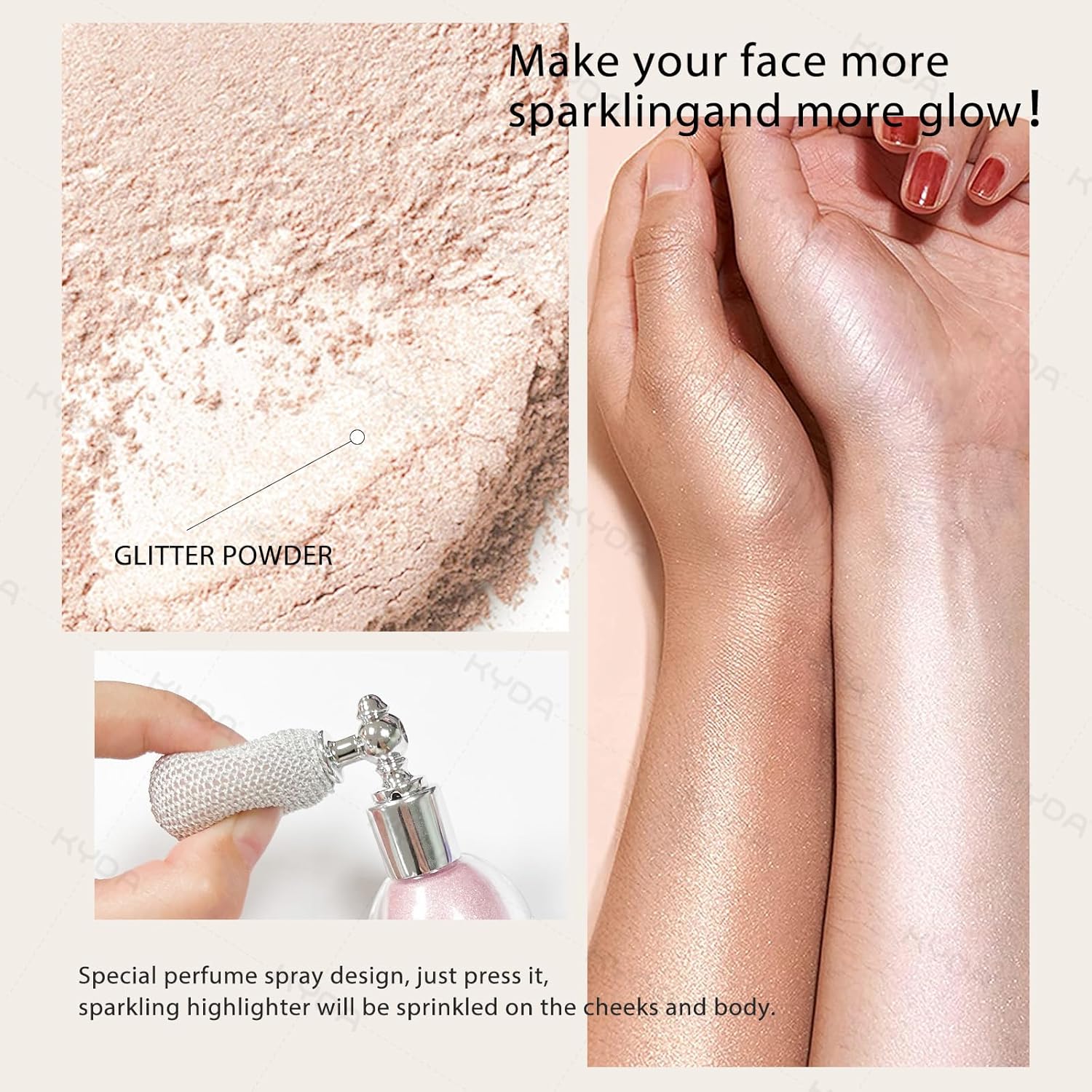 KYDA Highlighter Powder Spray, High Gloss Glitter Spray, Sparkling Powder Makeup, for Face and Body Glitter Cosmetic-Champagne Gold