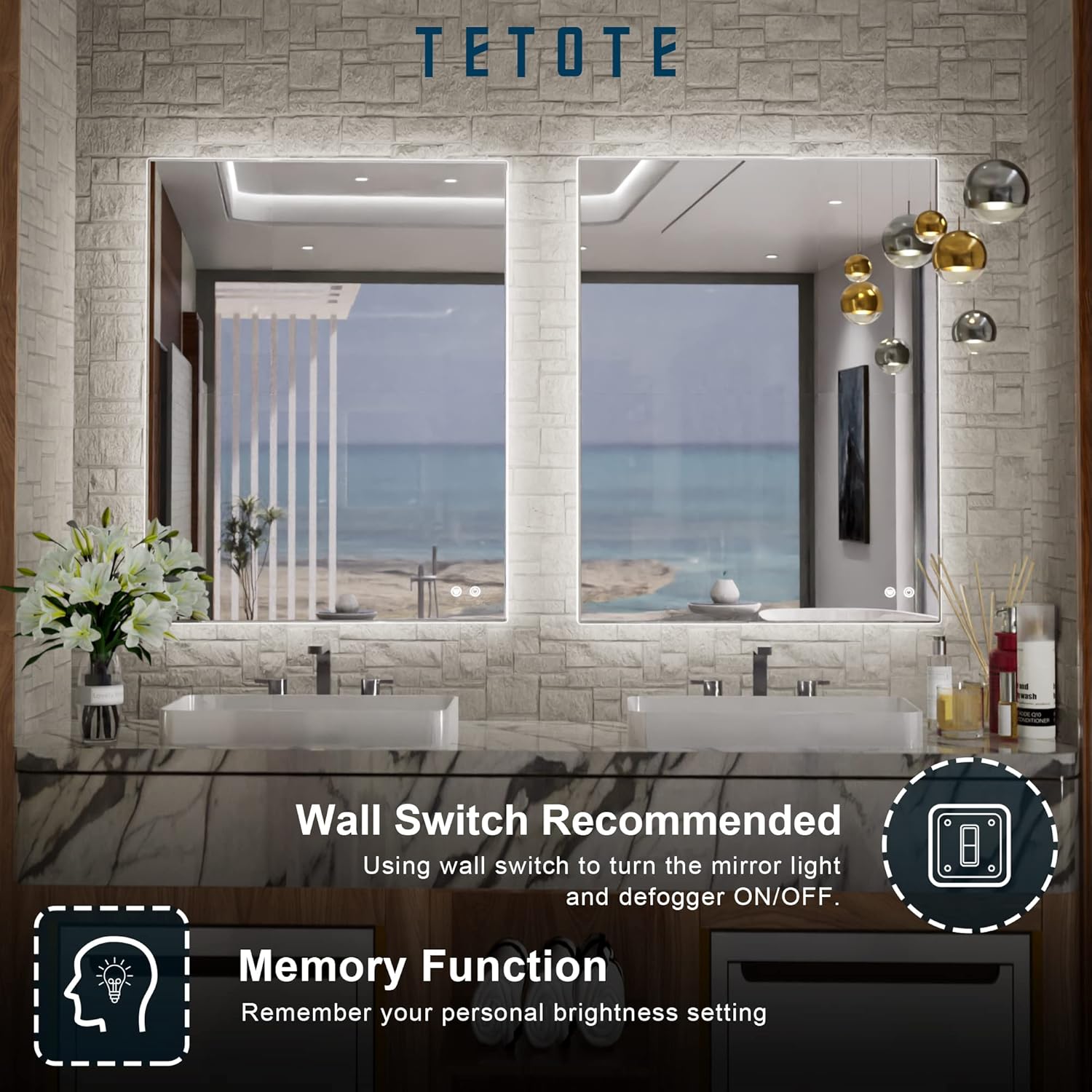 - ✨【Reliable packing & Easy installation】-TETOTE mirror is secured by reinforce foam box with extra protection.Plug and screws included.Installed with plug or hardwired,horizontal or vertical all by your choice.