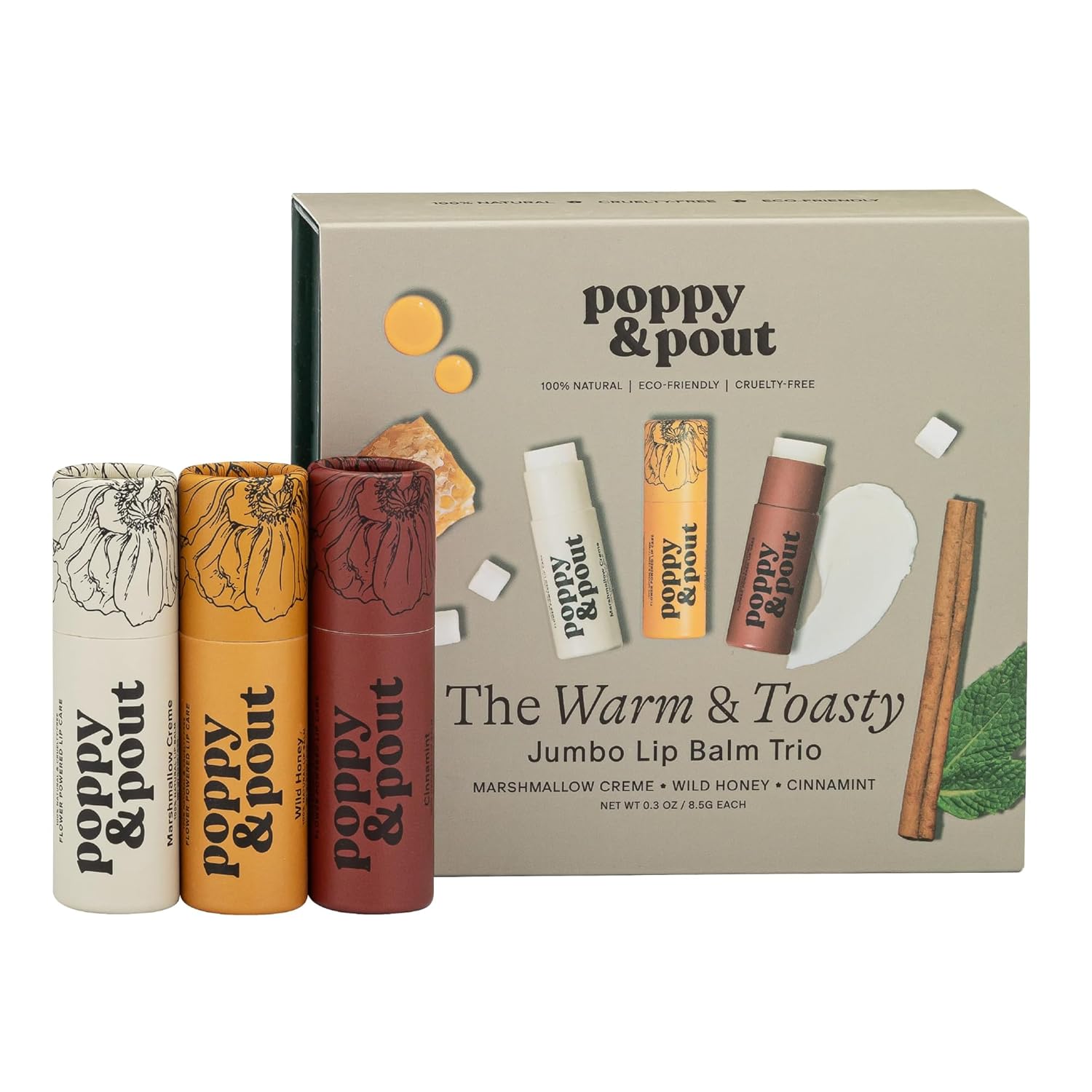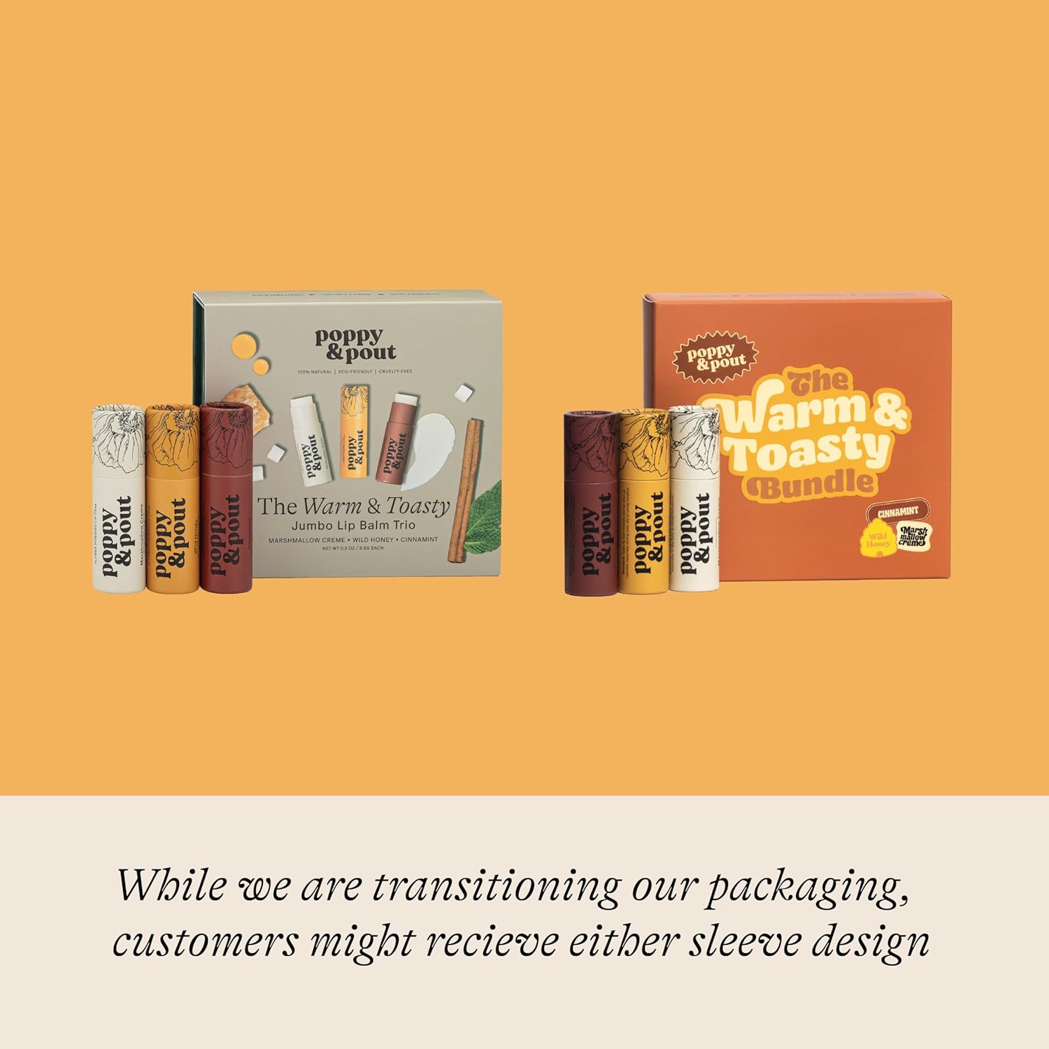 Jumbo Lip Balm Gift Set (3-Pack, Warm Flavors) | Poppy & Pout All Natural Lip Balms & Moisturizers | Hydrates with Beeswax, Vitamin E, Organic Coconut Oil | Cruelty-Free | Recyclable Cardboard Tube