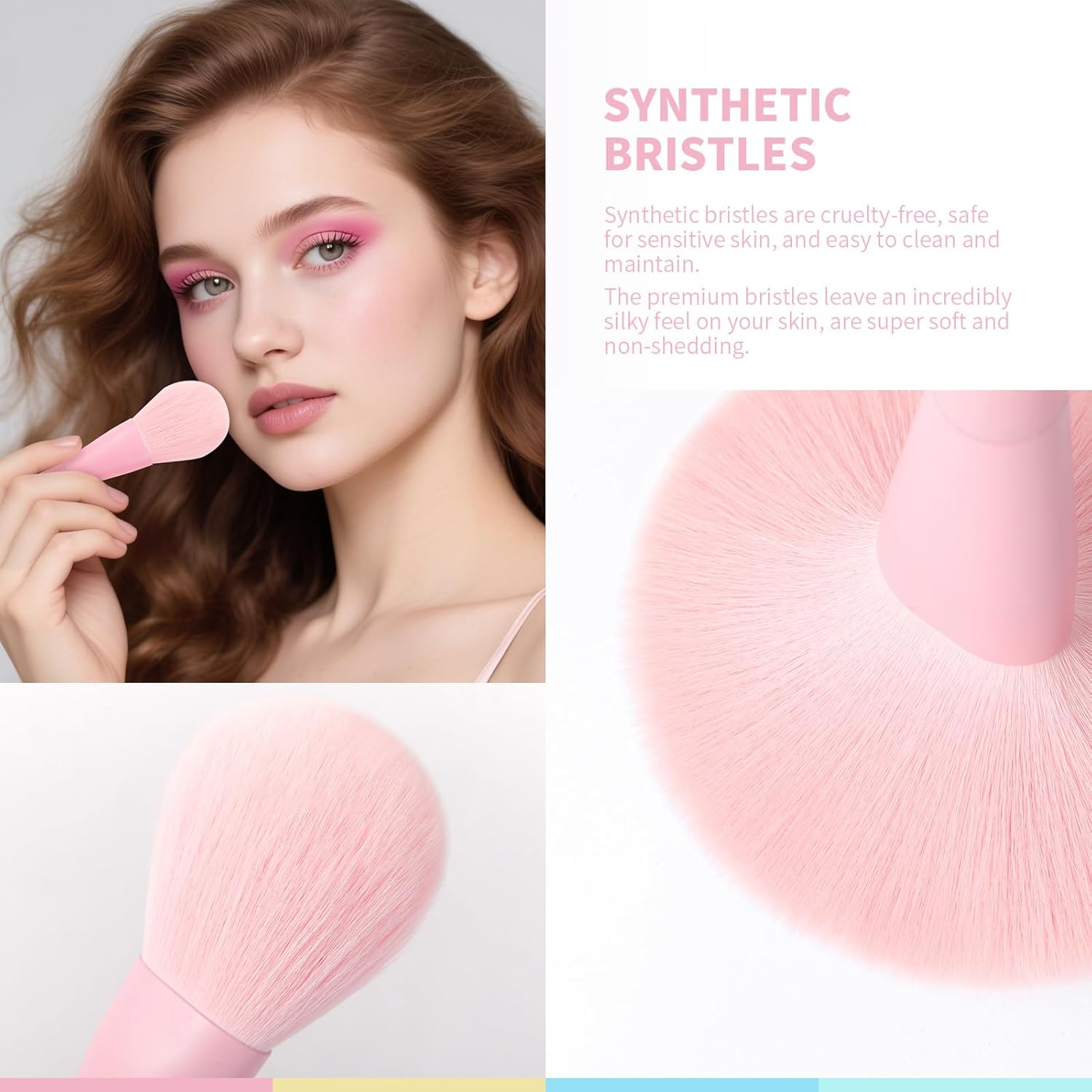 - ๐๐๐๐ ๐๐ง & ๐๐ซ๐ฎ๐๐ฅ๐ญ๐ฒ-๐ ๐ซ๐๐ ๐๐ซ๐ข๐ฌ๐ญ๐ฅ๐๐ฌ: The bristles are well made of durable synthetic fiber - soft and silky nylon, ensuring for long time use. All the makeup brushes are fine and dense, suitable for even the most sensitive skin. With a great holding power of powder, the brushes would be a good helper to create a flawless look