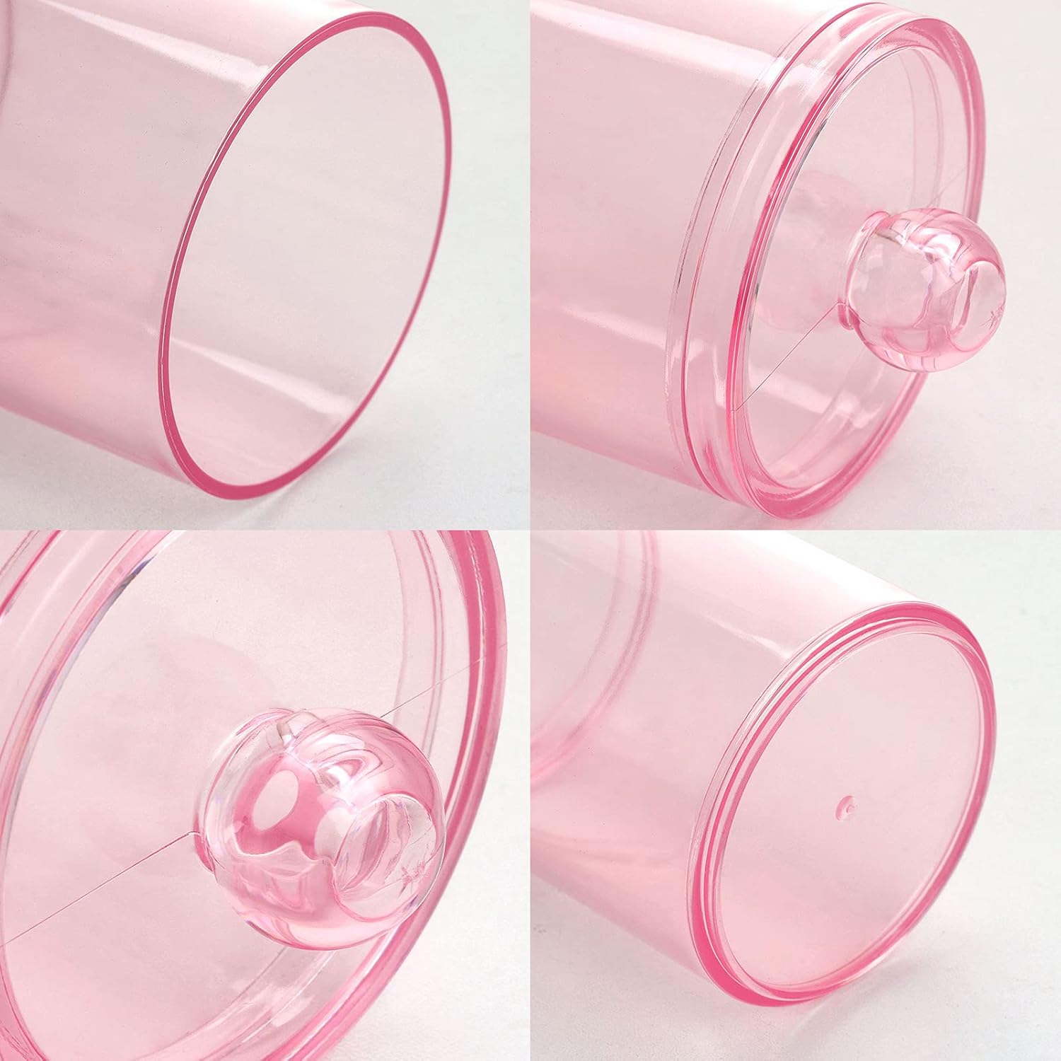 Tbestmax 3 Pack Cotton Swab Ball Pad Holder, 10 Oz Qtip Apothecary Jar Pink Makeup Organizer, Bathroom Containers Dispenser