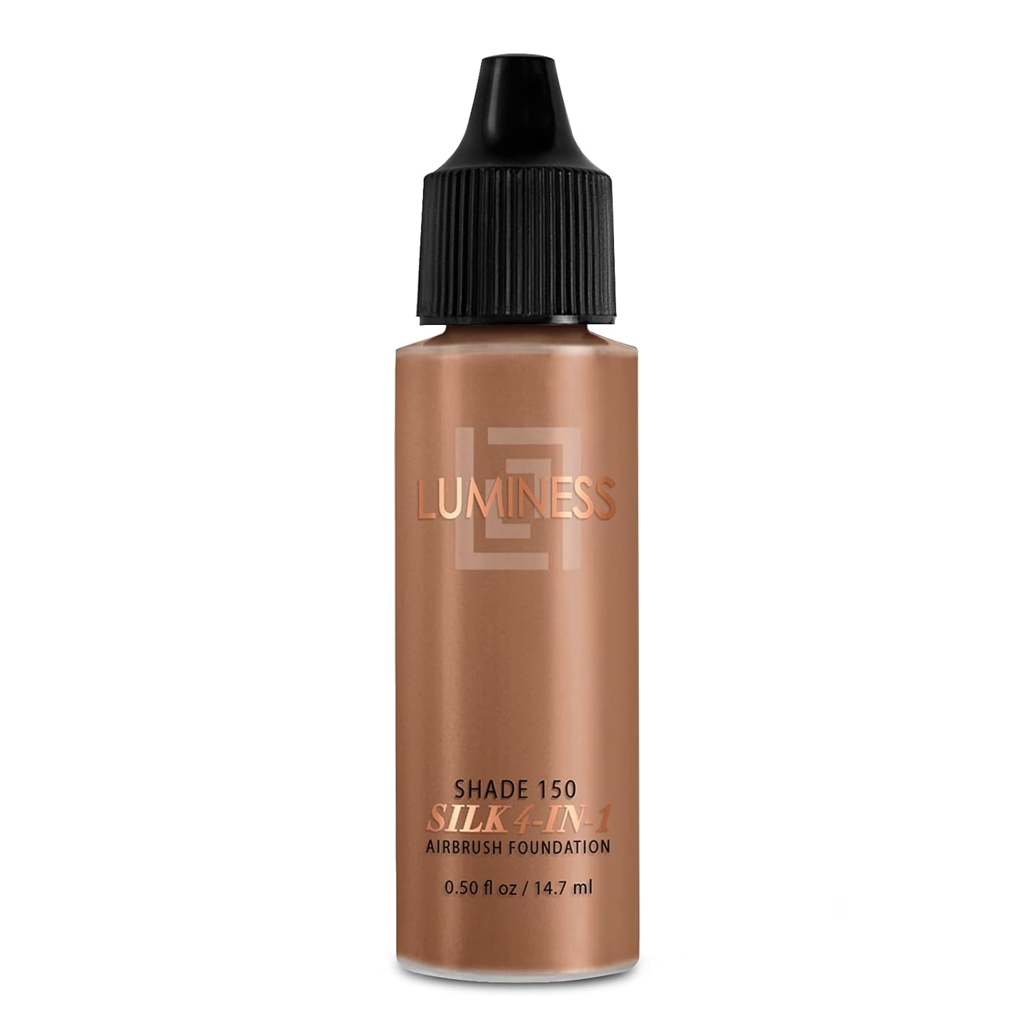 - Lightweight Coverage with a Natural Satin Finish: LUMINESS SILK 4-in-1 Airbrush Foundation combines an anti-aging serum, primer, high-coverage concealer, and all-day foundation into one. Provides 12-18 hours of water-resistant wear. 0.5-oz bottle in Shade 150.