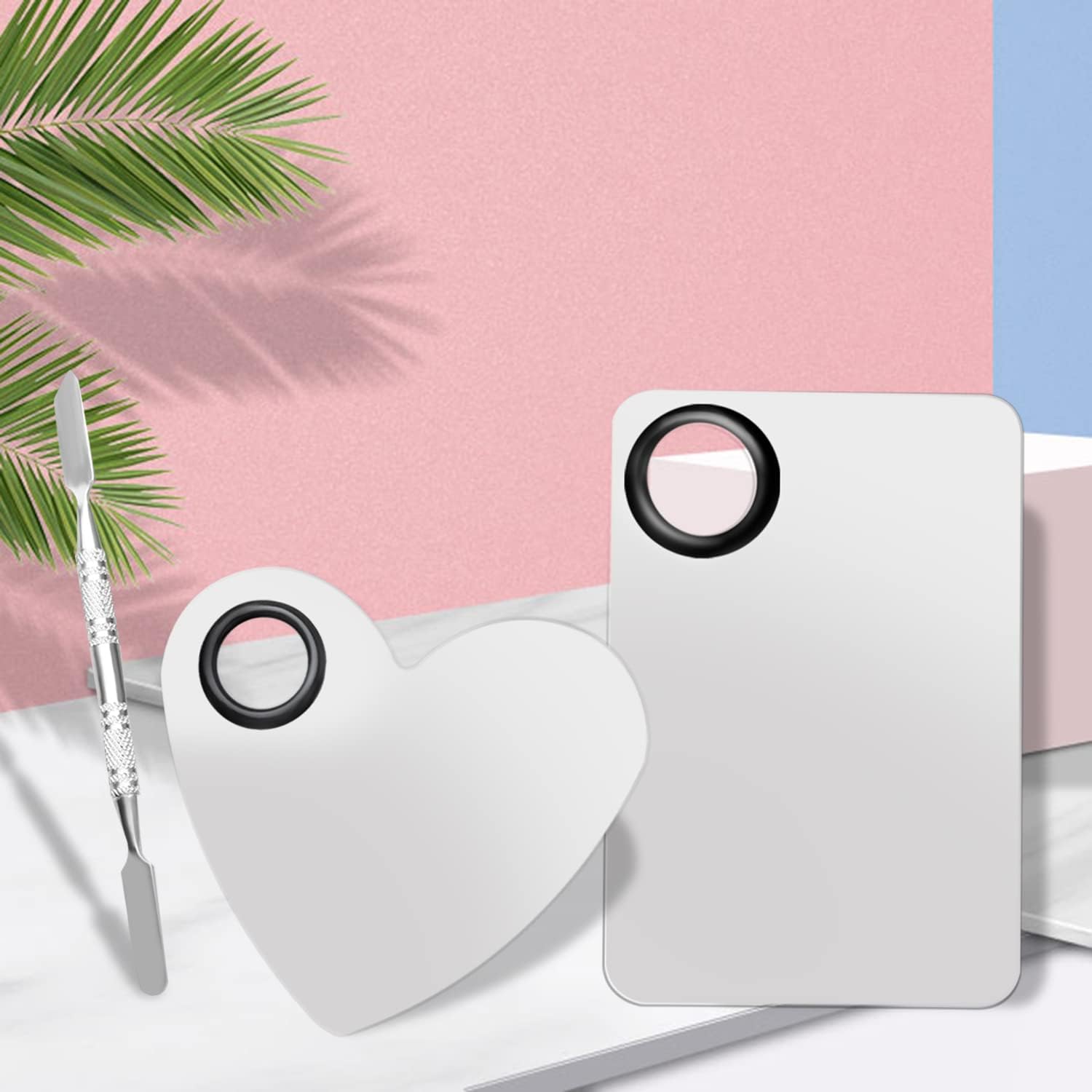 - What you will get: We will provide you with 2 pcs makeup mixing palette, one heart-shaped, one rectangular, plus 2 makeup spatula. The appearance is simple and elegant, and it is smooth to use. Two sets to meet your daily use needs.