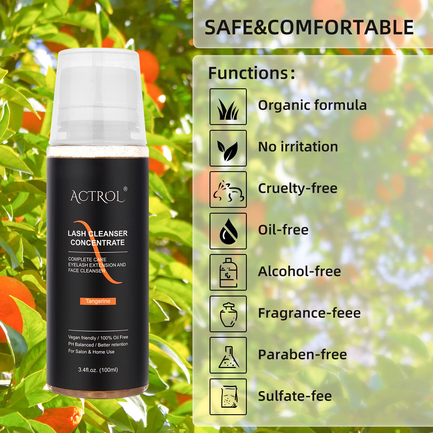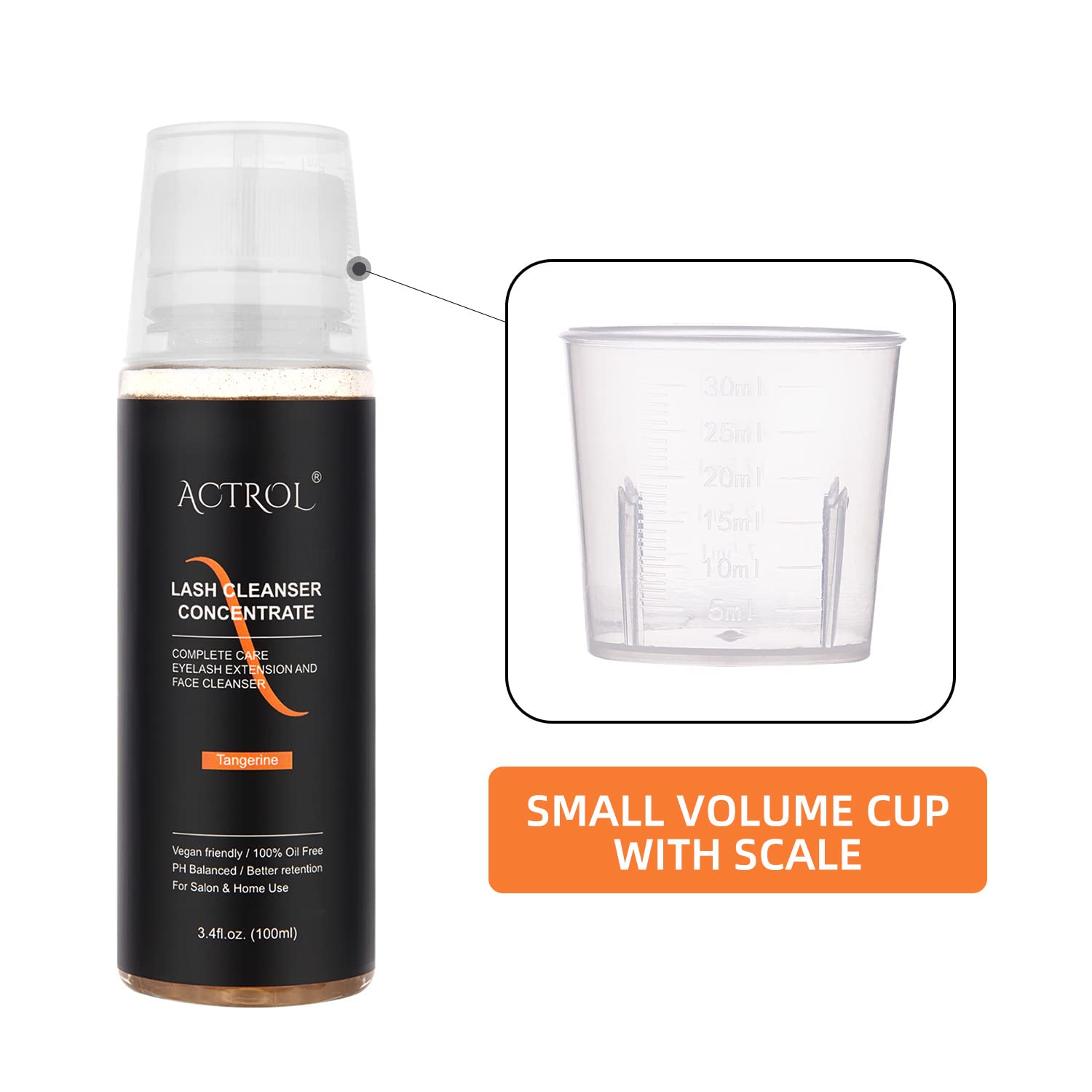 Eyelash Cleanser Concentrate 100ml Tangerine Professional Lash Shampoo Foaming Cleanser Paraben & Sulfate Free Non-lrritating Wash for Extensions Lashes with Salon Home Care-Makes 20 Bottles