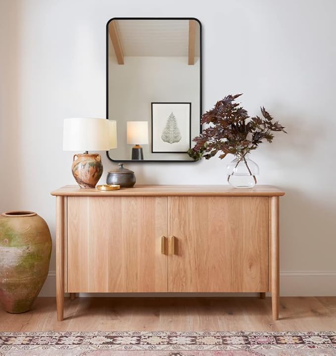 - 20x28 MATTE BLACK WALL MIRROR IDEAL FOR SMALL BATHROOM: This 20x28 inch mirror is the ideal size for small bathroom mirror, vanity mirror, wall mirror. With the unique beauty rounded frame design, it could definitely be the one for your space. The metal frame with modern matte black finish could match any decoration for your space(Modern,Farmhouse or Rustic). Let this rounded rectangle mirror enhance the beauty for your home instantly