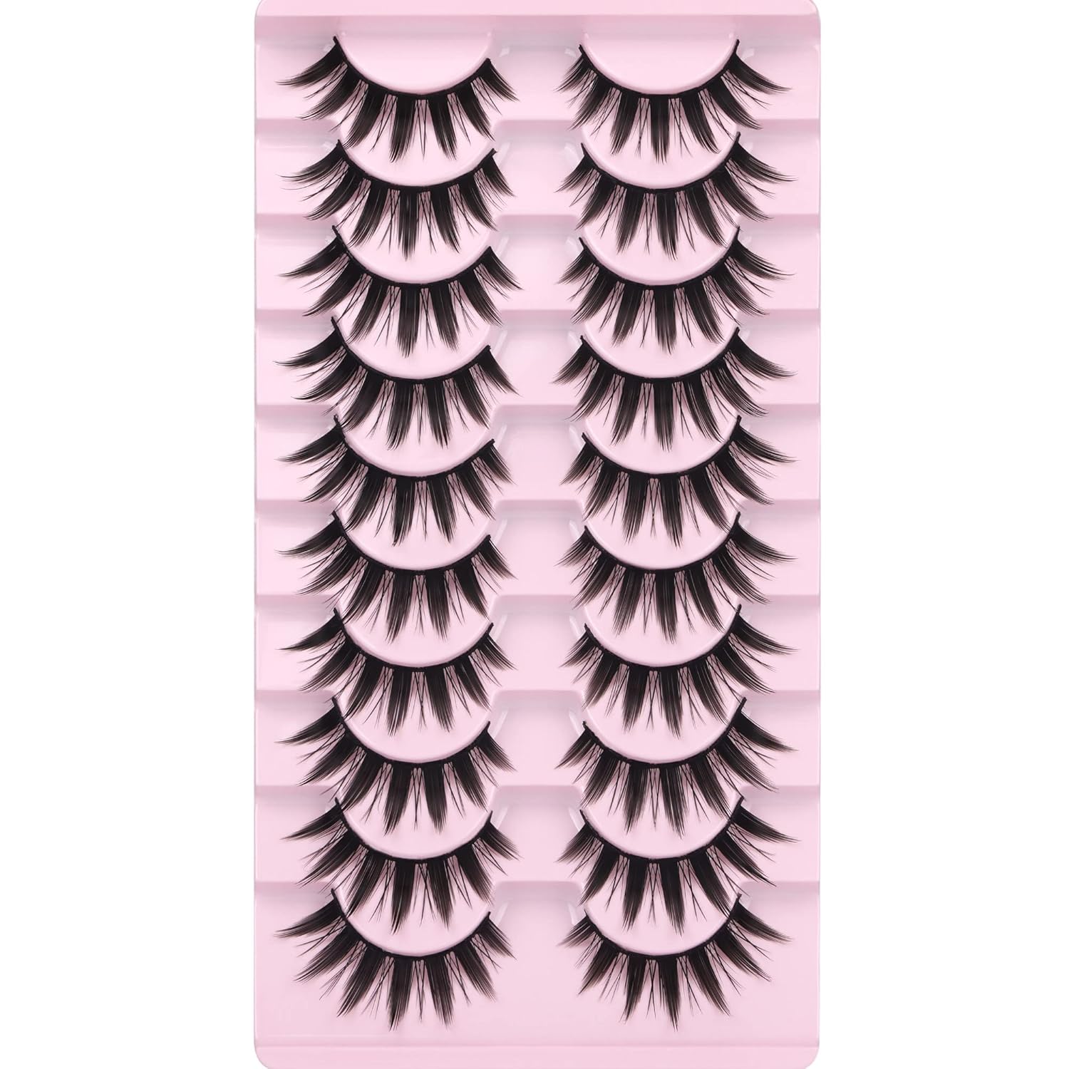 False Eyelashes 10 Pairs Manga Lashes Japanese Style Anime Thick Cosplay Lashes Natural Look 16MM Spiky 8D Wispy Faux Mink Lashes Full Strip Doll Lashes by FANXITON