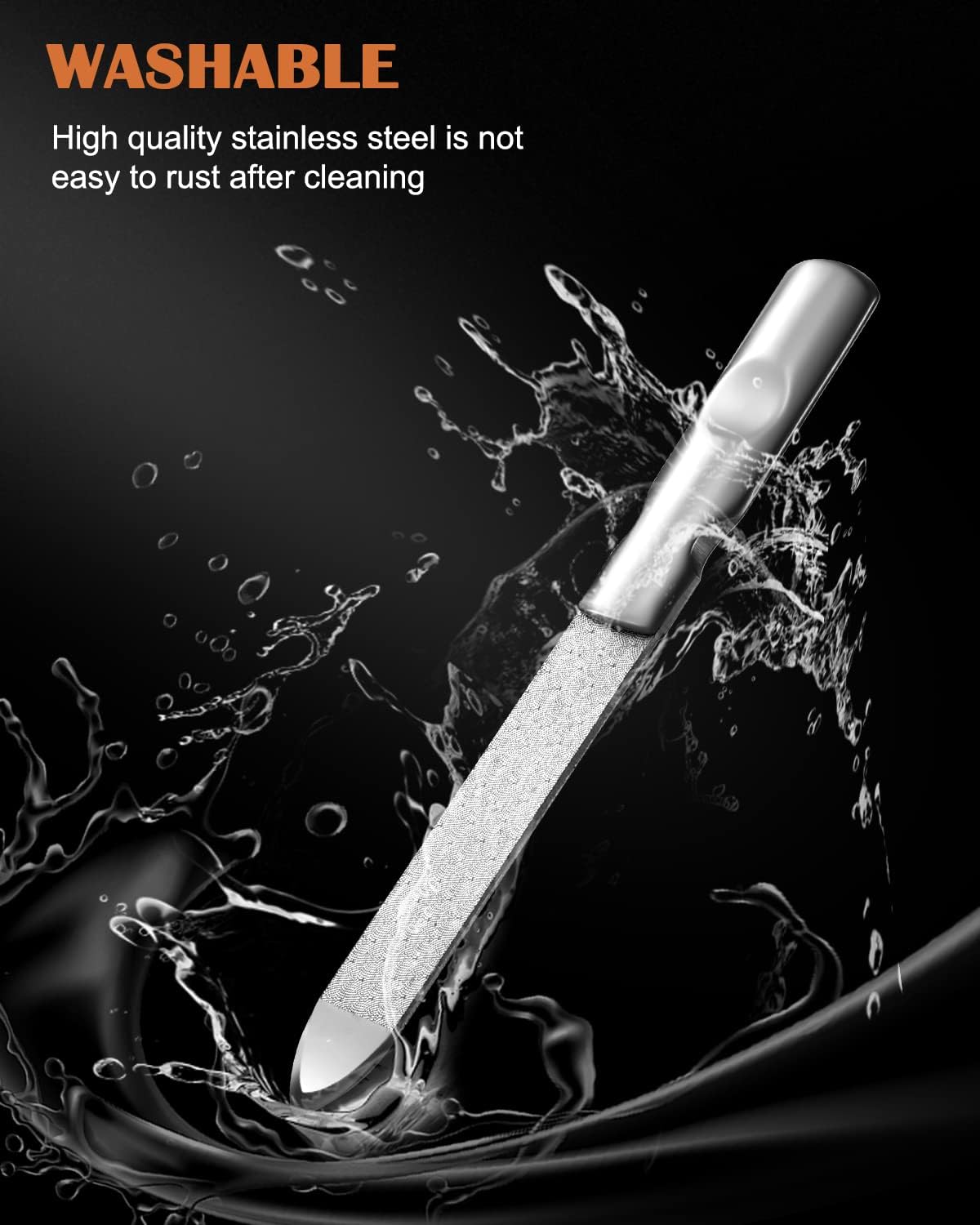 - Material - The steel nail file tools are used in anti-rust, solid, durable stainless steel. They can be washed directly with water to keep clean, professional nail files with non-slip handle are nice and smooth and is very comfortable to grip.
