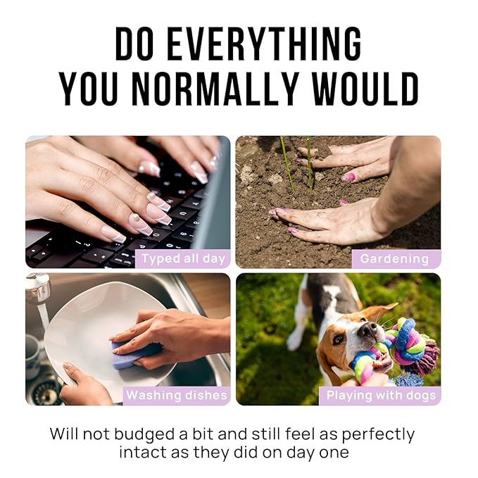 - Do Everything You Normally Would: All BTArtbox fake nails offer feature protective building gel finish so that you are able to do everything you normally would, such as typing, gardening, houseworking or playing with your pet. They will not budged a bit and still feel as perfectly intact as they did on day one
