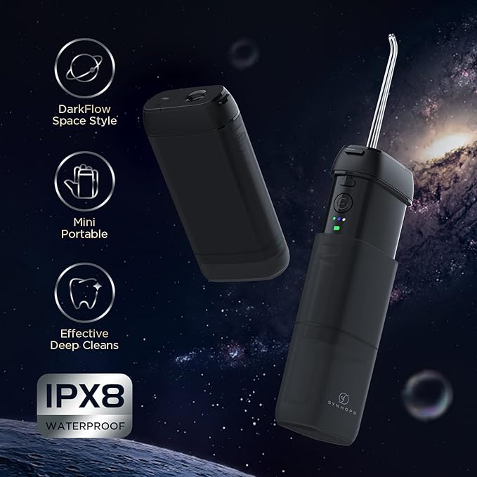 • [The Portable design &Deep Clean]: The SYNHOPE water flosser is designed with telescopic water tank and integrated storage nozzle, which greatly reduces the volume of the product compared with similar products and is very convenient to carry around. SYNHOPE Water Flosser can offer high pressure water pulse 1200 times &140PSI strong water pressure, which is the most convenient and most effective way to floss, removing up to 99.9 percent of plaque from treated areas and improve gum health.