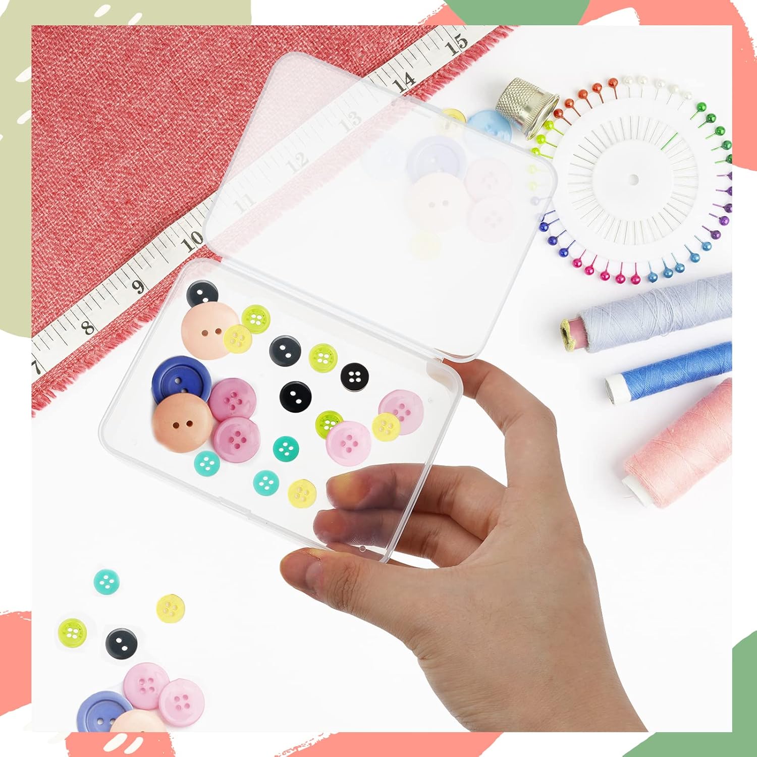 - Small plastic case perfect for storing and organizing crafts rhinestones, beads, bobby pins, jewelry findings, crayons, swabs, earplugs, dental floss, thumbtack, etc.