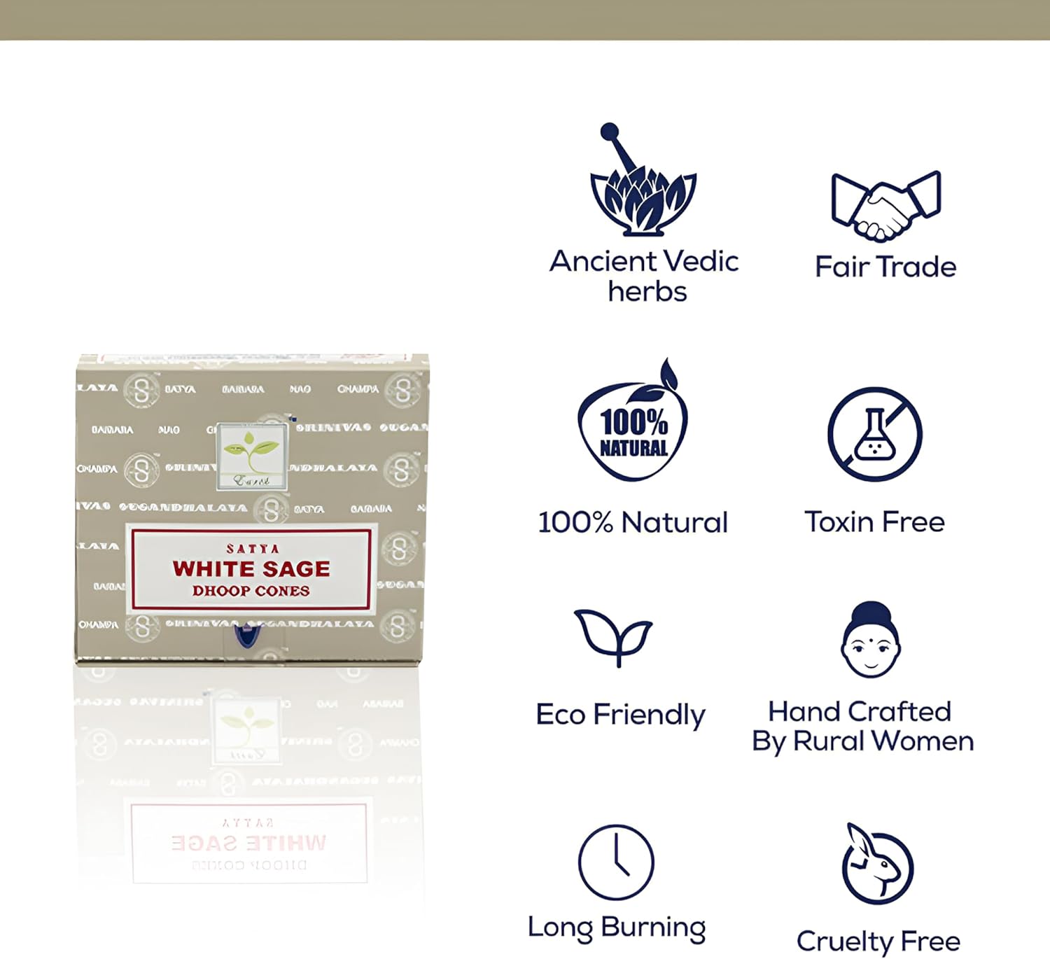 - ā 144 Dhoop Cones in 12 Boxes: Each pack contains 12 boxes, each filled with 12 earthy and soothing white sage-scented dhoop cones, providing you with a total of 144 cones for long-lasting use.