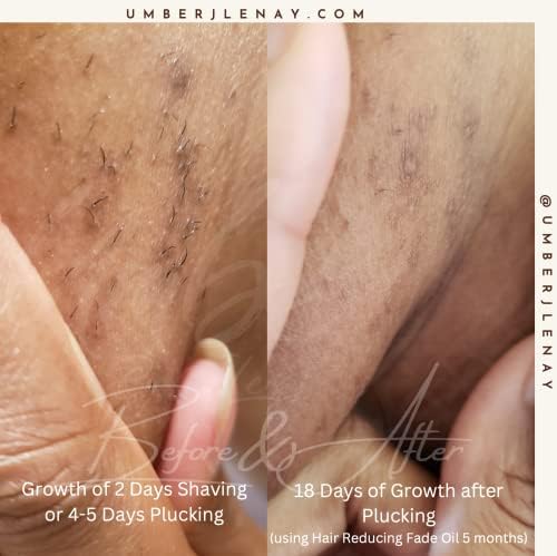 - Versatile Benefits: Beyond hair reduction, our Hair Reducing Spot Fade Oil also targets hyperpigmentation, scarring, and ingrown hairs. Daily use improves hair reduction, delays regrowth, and shrinks hair follicles. Results may vary, but changes can be observed within 2 weeks to 2 months.