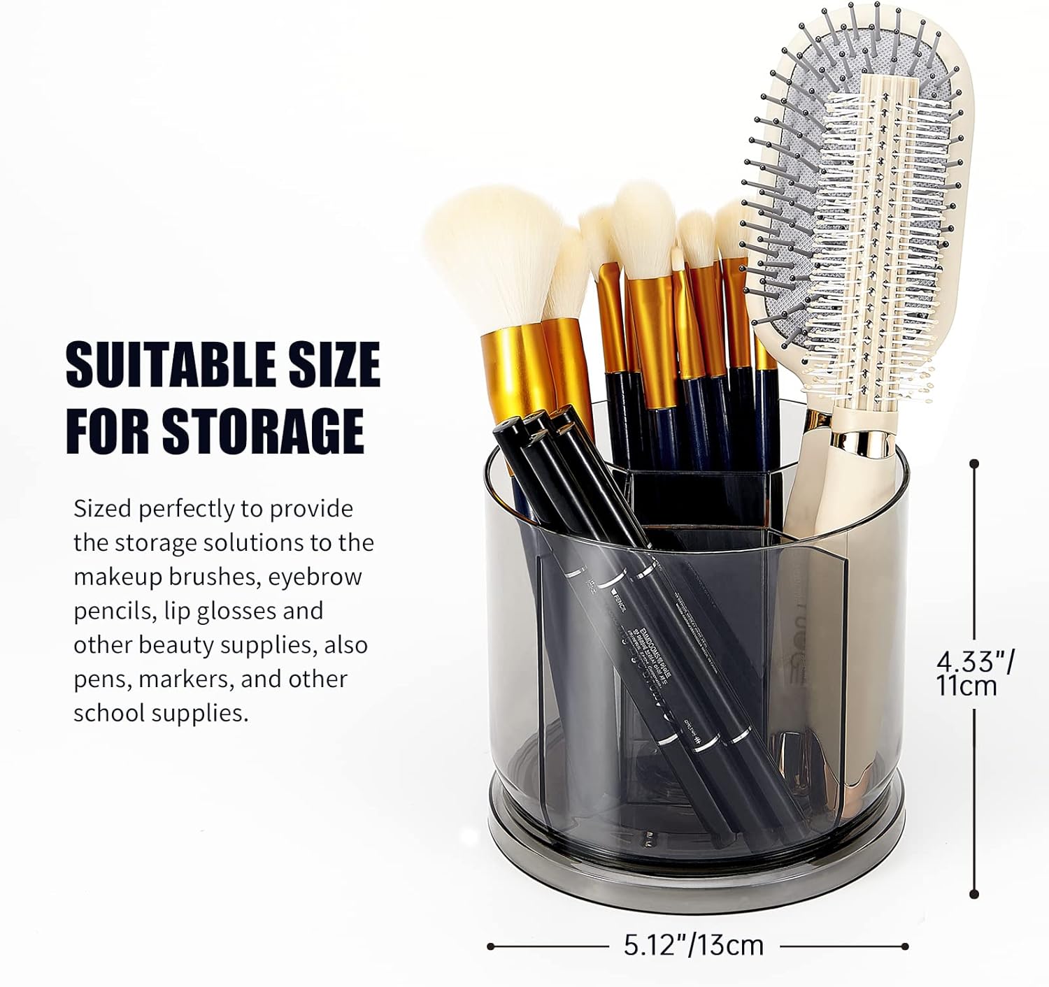- ★PERFECT RIM HEIGHT: Measuring 4.33 inches, this round container is suitable for storing vanity accessories, school and office supplies, ensuring a secure spin. Whether placed on a bathroom countertop, office desk, children's desk, pantry, or shelves, it's a great choice.