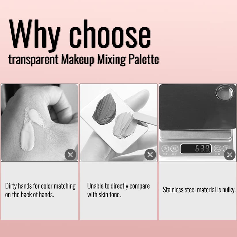 - 【MULTIPURPOSE】 Our transparent plastic makeup mixing palette is suitable for mixing foundation make-up, liquid, nails, face cream, eye shadow, lipstick, and other cosmetics. It is also perfect for color-mixing of artistic pigments, making it a versatile tool for any makeup artist or enthusiast.