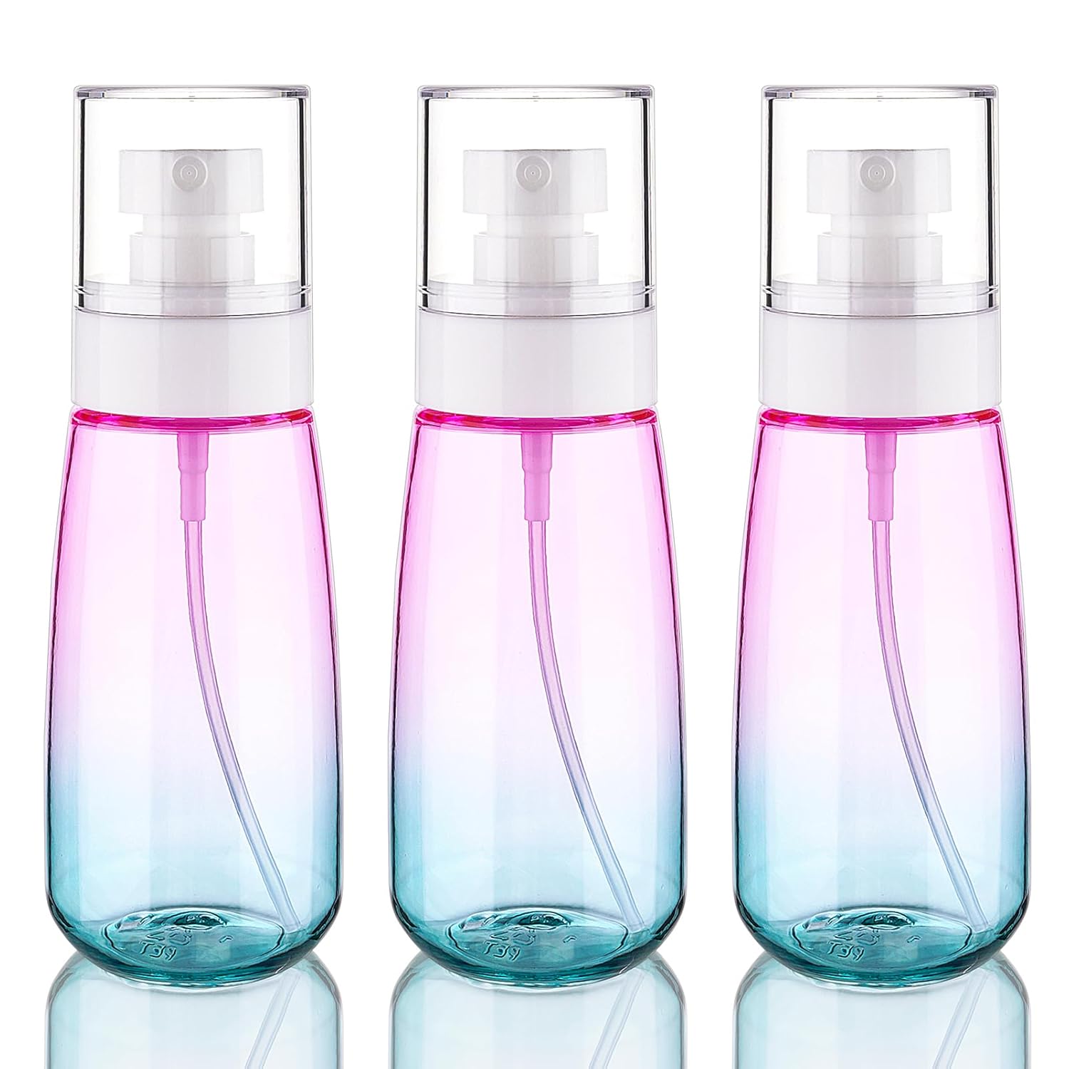 Cosywell Fine Mist Spray Bottles TSA Approved 3.4oz 100ml 3 Pack Leak Proof Travel Spray Bottle Empty Small Spray Bottles for Perfume Essential Oils Toners Rose Water Cosmetics (3Gradient Pink Blue)