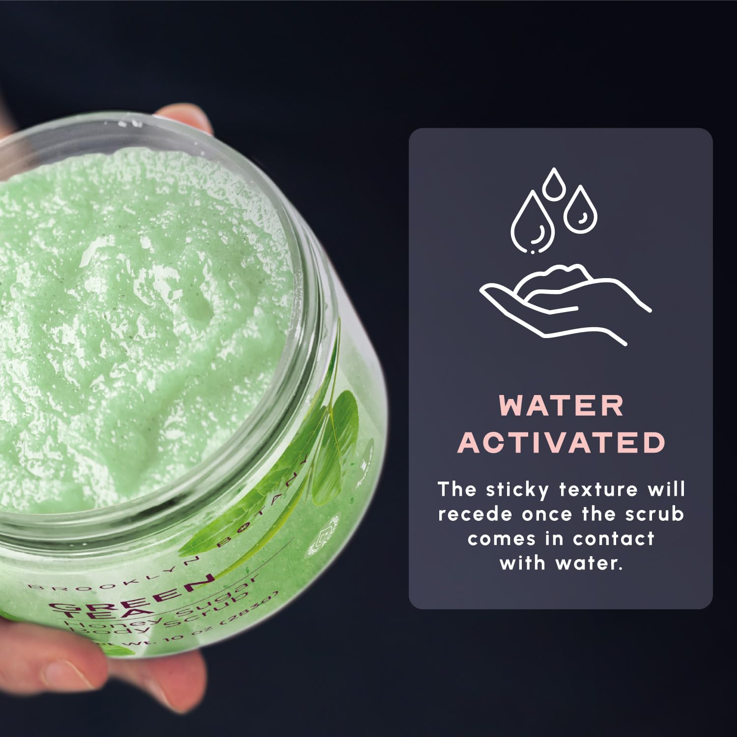 Brooklyn Botany Green Tea Honey Sugar Scrub for Body 10 oz – Deeply Hydrating and Gently Exfoliating Body Scrub for Women and Men – Moisturizing and Nourishing the Skin
