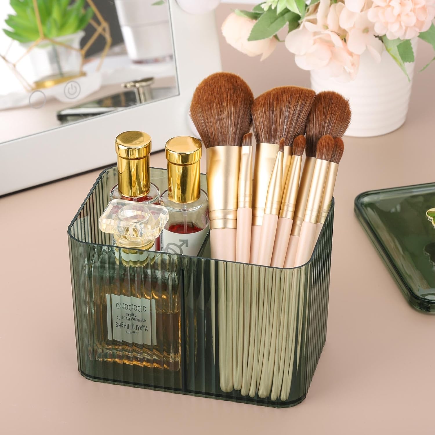 Tbestmax Qtip Holder Dispenser 3-Section Clear Cotton Swab/Pad/Ball Holder Container 3 Grids Bathroom Organizer Jar Cosmetics Storage for Vanity(Green)