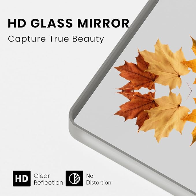 - Shatterproof Tempered Glass: The wall-mounted bathroom mirror features 27MM tempered glass with shatterproof film, which is shatter-proof, burst-proof, and ensures your safety even in case of breakage