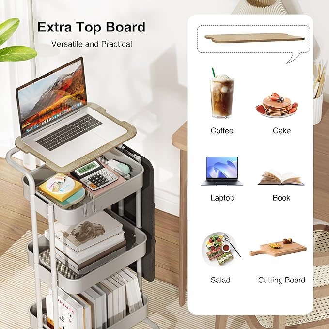 - Multifunction Storage Cart: This metal rolling cart with table top is easy to store and transport. It can be used as art carts, bathroom carts, kitchen storage carts, craft carts, service carts, storage shelves, tool carts, and more. You can flexibly use it for office, kitchen, living room, bathroom, narrow places, etc.
