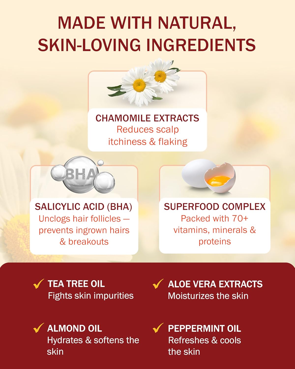- Active Ingredients : BHA, PRO VITAMIN (B5), Salicylic Acid, salicylic_acid, tea_tree_oil