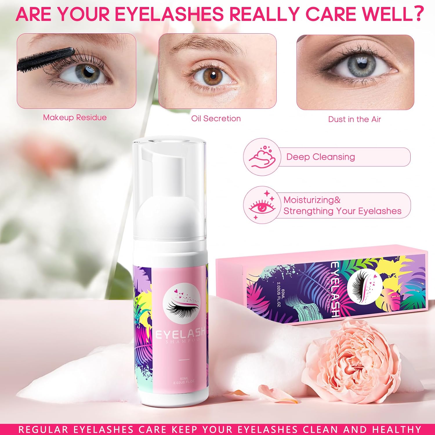 - GENTLE LASH EXTENSION CLEANSER:Keep your lashes healthy,clean and long with our premium lash shampoo kit with fan! Our foaming lash shampoo not only cleans residue from your lashes,but also reduces lashes falling out.