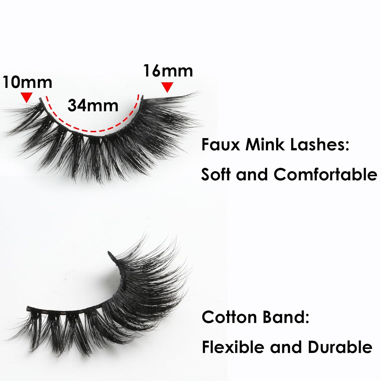 - Comfortable Band - With the thin band, the lashes can be soft & ligheweight, bring you comfortable wearing experience. No burden to makeup. 34mm flexible and durable band can be trimed easily to suit your eye. The lashes can be reused with proper care.