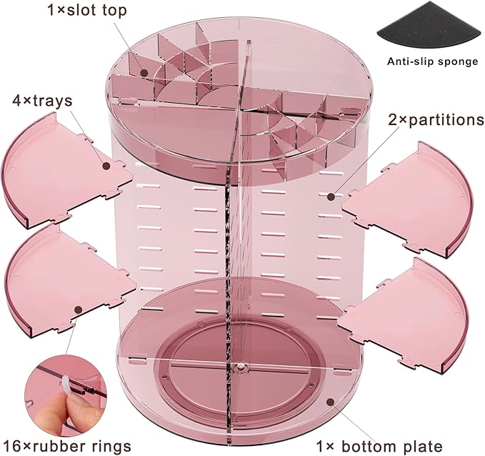 • 【360-Degree Rotation】Jiavarry makeup storage organizer neatly stores most cosmetics. Its 360-degree rotatable function keeps items within easy reach and saves time. The bottom is equipped with non-slip silicone for stability, plus a sponge pad to secure brushes during rotation