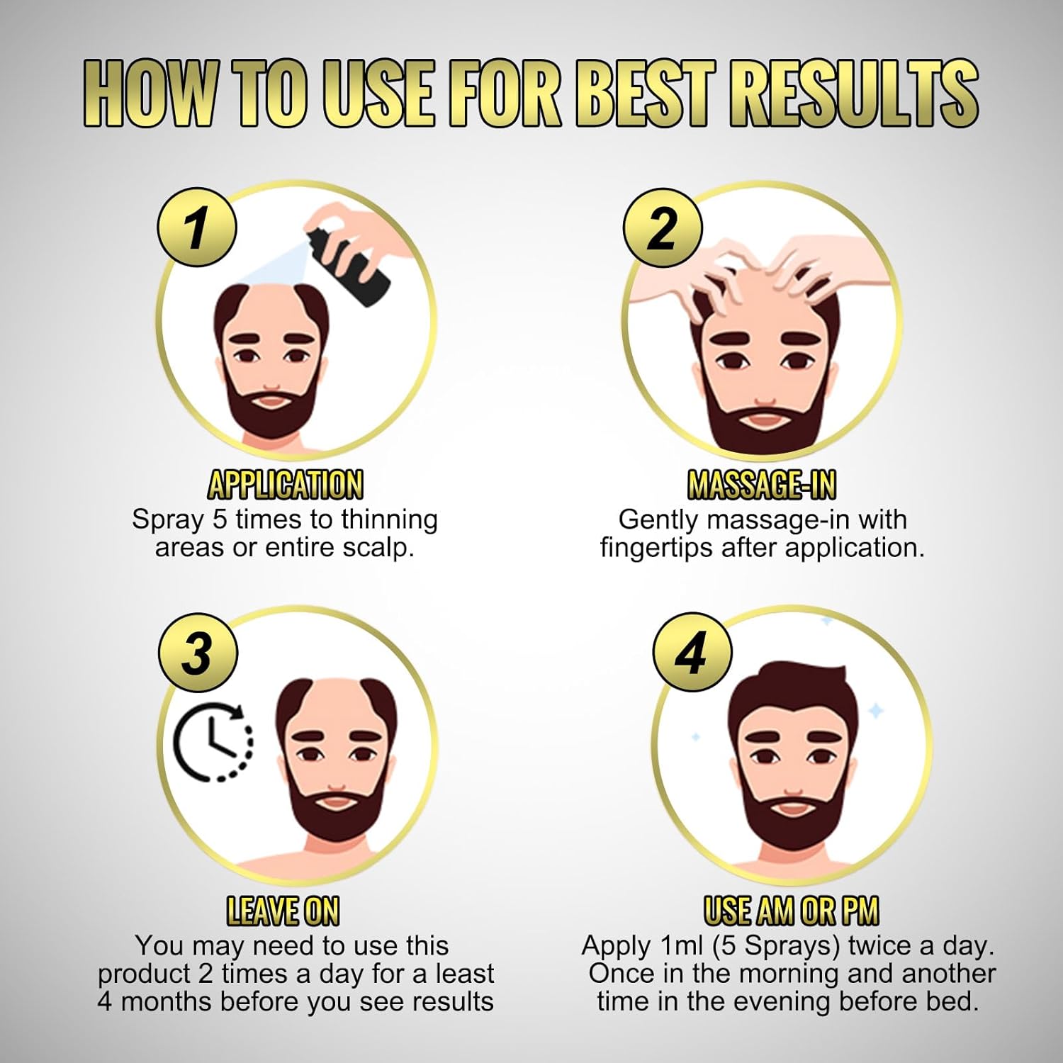 - EARLY DETECTION, EARLY USE - Start applying at the first signs of hair thinning to help slow the hair loss process, It can be used twice a day, in the morning and evening, to achieve the best results. It is perfect for those who need to grow hair faster, people with thinning hair, pattern baldness, inelastic hair, and brittle hair. Using more or more often will not enhance results.