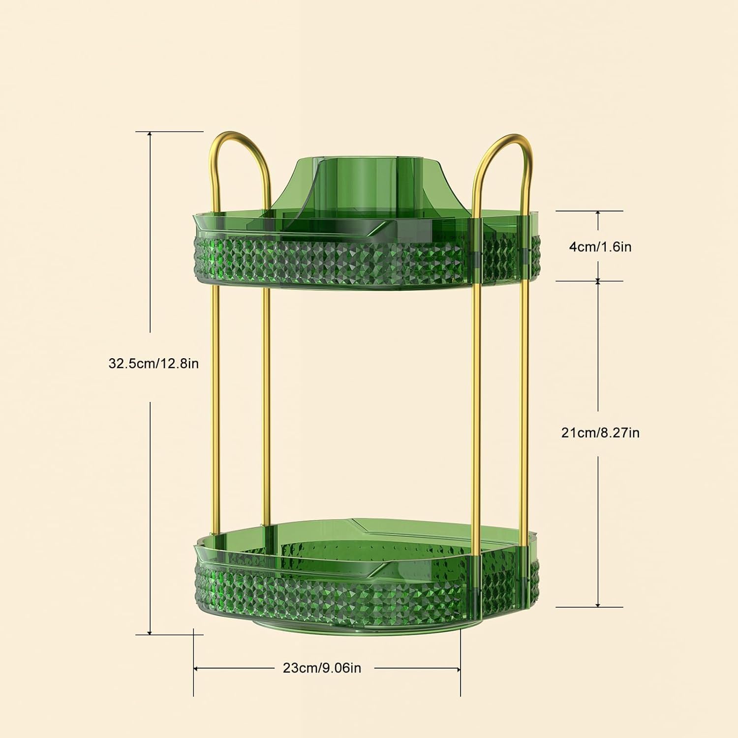 - Size: 12.8"*9.06"*9.06" (32.5 cm * 23 cm * 23 cm). We will check the green makeup organizer for you before shipment, if you have any problem after receipt you can respond to us, we are 24 hours for you
