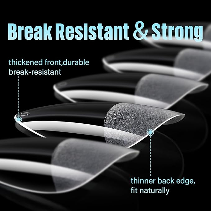- 【Professional Nail Tips Almond Shape】Great medium almond press on nails show a great clear cover with innovate material soft acrylic tips can be used with nail polish, dip powder, acrylic acrylic powder, easily make salon nail effect instead of dropping money at expensive salon!