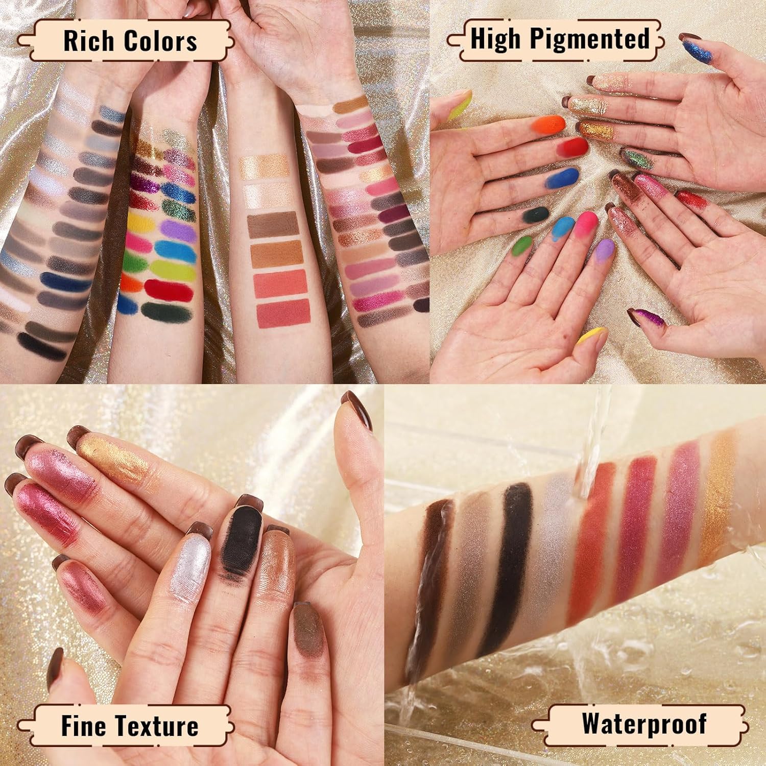 - 【❤Long Lasting and Expertly-Chosen Colors】High quality formula makes it waterproof and last up to 24 hrs even when you are sweating or swimming. Expertly-curated eyeshadow palette contains nudes, oranges, browns, purples, pinks, greens, reds, blacks, blues, yellows, greys in several finishes, rich-toned matte, buttery-like shimmer, blinging glitters. Intense pigments payoff delivers striking impact and light-catching dimension.