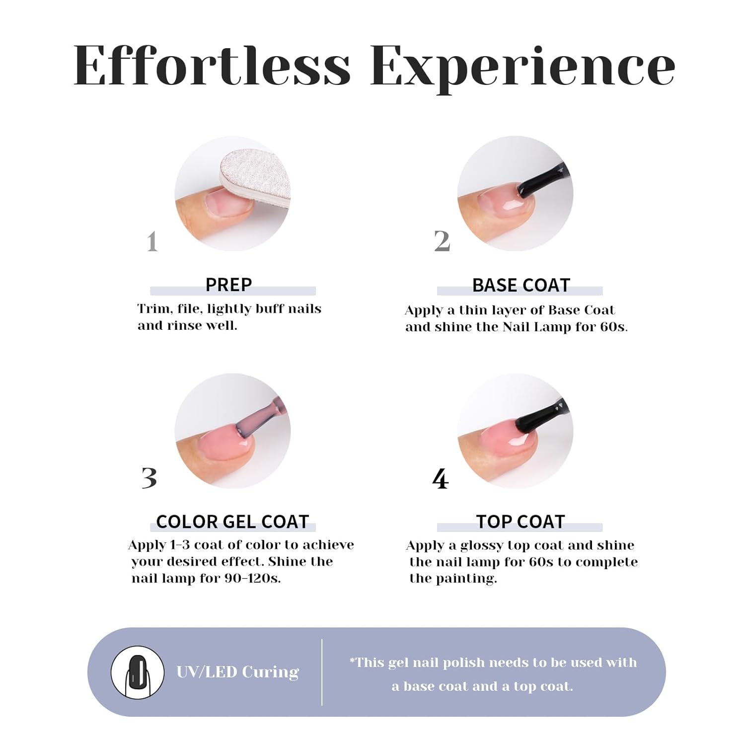 - Quick curing with nail lamp: To achieve the best results, this gel nail polish requires a nail lamp for curing. The light helps to speed up the drying process, ensuring a glossy and chip-resistant finish.