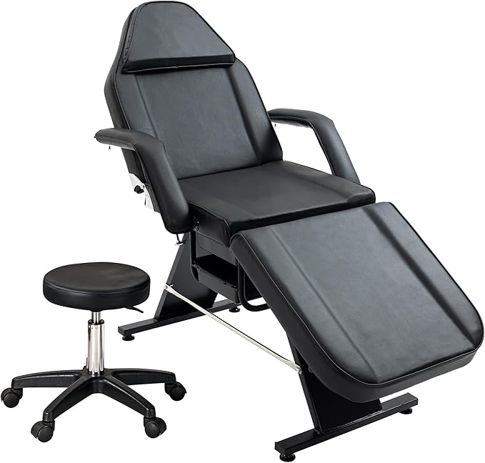 - ★【Adjustable】 Provide ample relaxation, as the removable head cushion opens to a facial cradle for clients to breathe comfortably while laying face-down, and the armrests can easily be removed for more space to move. Included with this chair is an adjustable, 360-degree swivel stool with a cushioned, faux-leather seat, providing restriction-free comfort as you work on your clients.