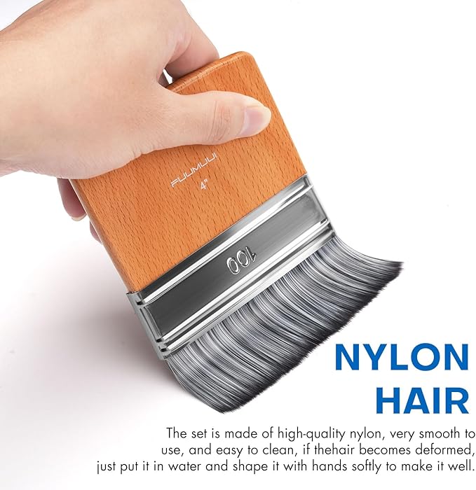 - Wide Application: Flat paddle brush is suitable for swaths of color coverage, creating patterns and textures in large-scale murals and paintings. You can also turn it over to get sharp and straight lines. It is great for acrylic paints and oil use.