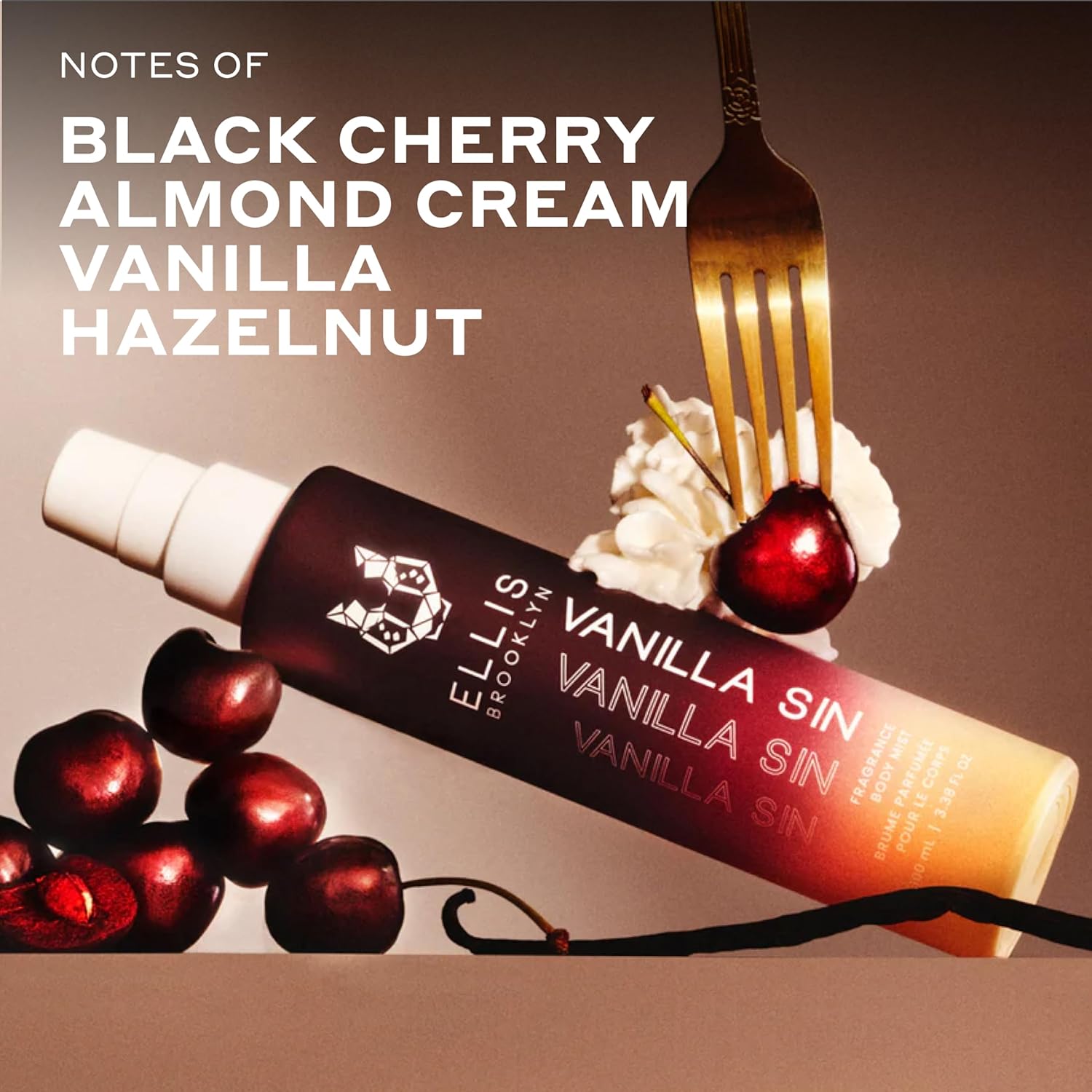 Ellis Brooklyn VANILLA SIN Hair And Body Fragrance Mist - Gourmand Perfume Mist with Black Cherry, Fresh Freesia, & Bourbon Vanilla, Vegan Perfume Made In The USA,100ml, 3.38 Fl Oz