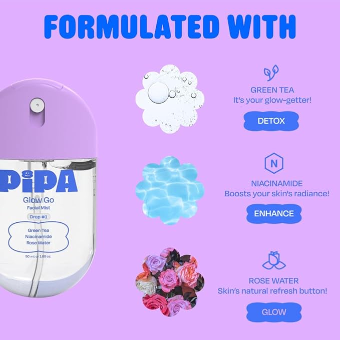Pipa Skincare Glow Go Facial Mist 30 ml | Organic Rose Water Toner Spray | Alcohol-Free Balancing & Hydrating Face Mist for Kids & Tweens Ages 8 to 13 | Soothes & Refreshes Skin Daily