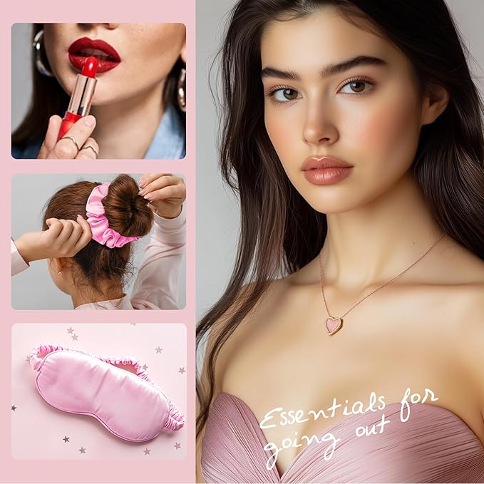- 23PCS SPA GIFT BASKET: Shower Gel, Bubble Bath, Diffuser Oil, Jojoba Oil, Bath Bomb, Soy Candle, Day Cream, Night Cream, EVA Sponge, Lip Mask, Dry Flower, Pink Bag, Necklace, Keychain, Satin Hair Tie, Headband, Wrist Bands, Silk Sleep Mask, Jewelry Box, Reed Diffuser Stick packaged in a nice beautiful basket. The spa gift baskets for women offer the most luxurious and perfect bath experience