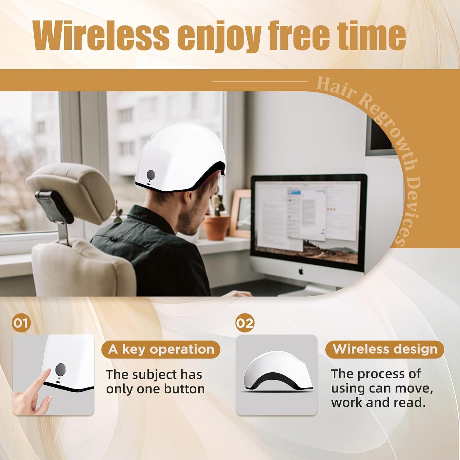 - One key operation: Wireless design,20 minutes every time. The laser hair helmet body has only one button, just press the button to start 20 minutes every time, and it shuts down automatically at the end. People can move, work, read, entertain, etc. during the use. Indoor use will be recommended 2-3 times a week. Severe cases can be once a day. The charging process shows a red light, and the green light indicates that the device is fully charged.