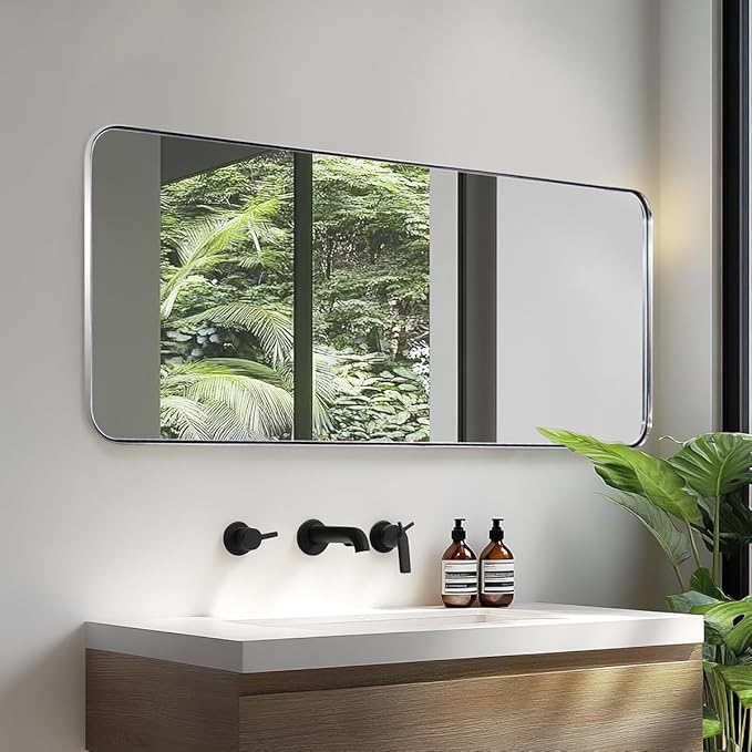 - [FUSS-FREE INSTALLATION] Our 18x48” chrome full length wall mirror is easy to be installed within minutes.Great to hang one horizontally over a double vanity. It comes with 4 pre-installed reinforced D-ring hanging clips, sturdy enough to hang the metal framed mirror on the wall horizontally or vertically.