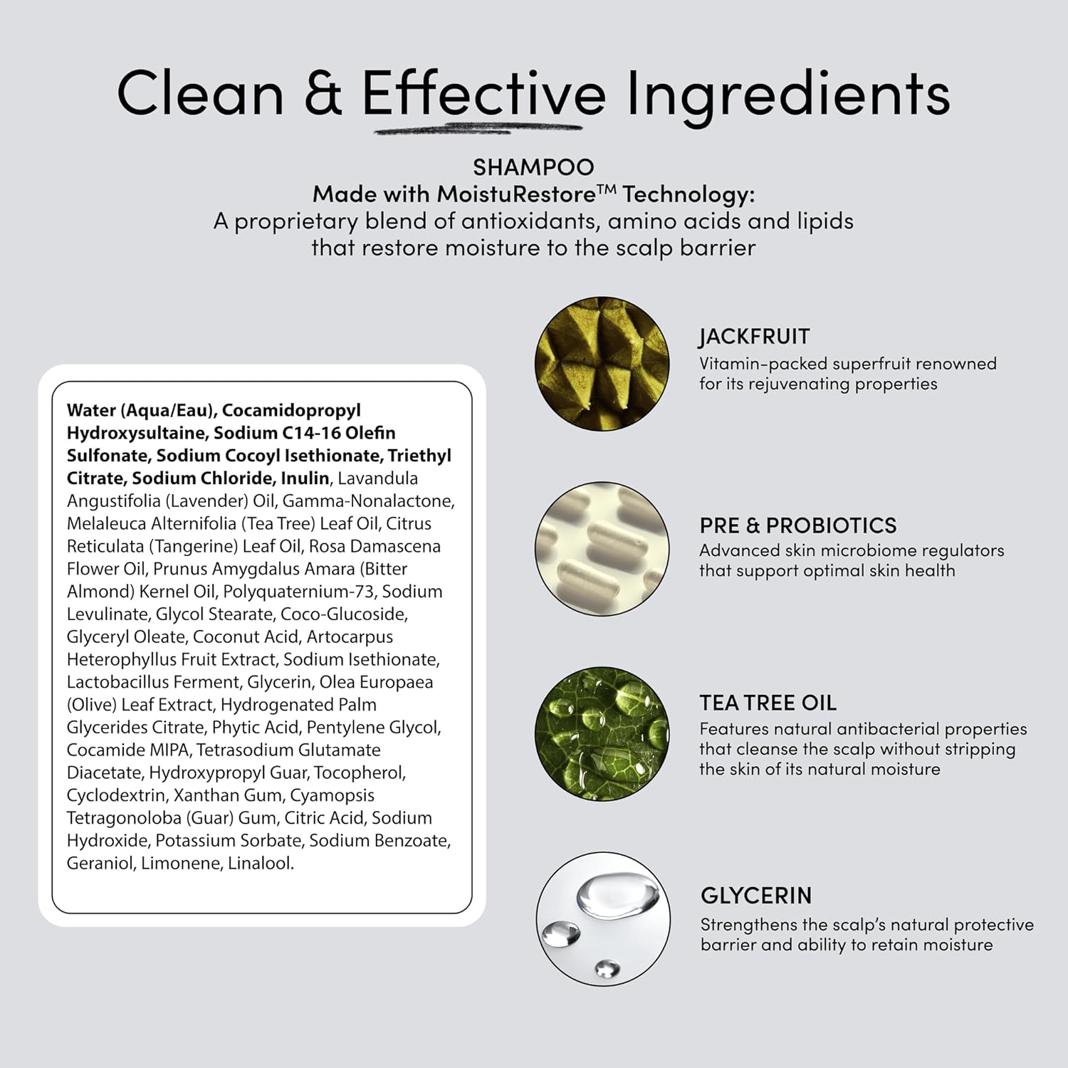 - COMPLETE DAILY HYDRATION SET: This three-step system combines a moisturizing shampoo, a soothing conditioner, and a renewing scalp moisturizer for round-the-clock hydration. Scientifically formulated with MoistuRestore Technology, it works to rebalance scalp pH, replenish moisture, and strengthen hair from root to tip.