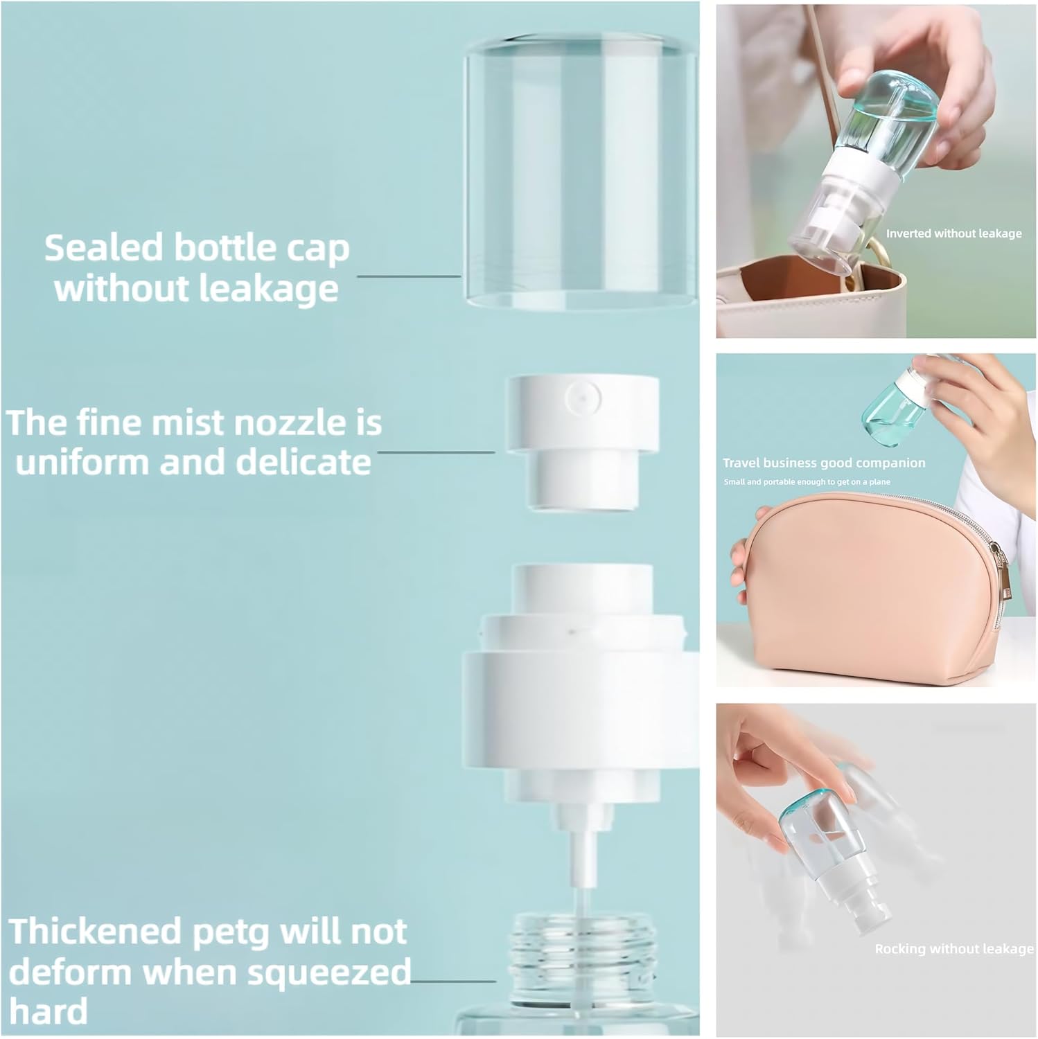 - 【Premium PETG Construction】 Crafted from durable, impact-resistant PETG plastic, these mini spray bottles resist cracking and breaking even with daily use. Their sturdy design ensures longevity, making them ideal for frequent travelers and home use.