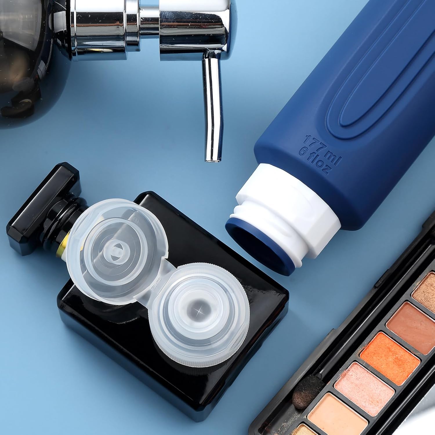 - Oversize 6oz travel bottle: Featuring a PVC toiletry bag, these travel-sized silicone bottles are perfect for storing and dispensing your favorite shampoos, lotions, and other liquids. Designed for convenience and durability, this travel set is a must-have for all your adventures.